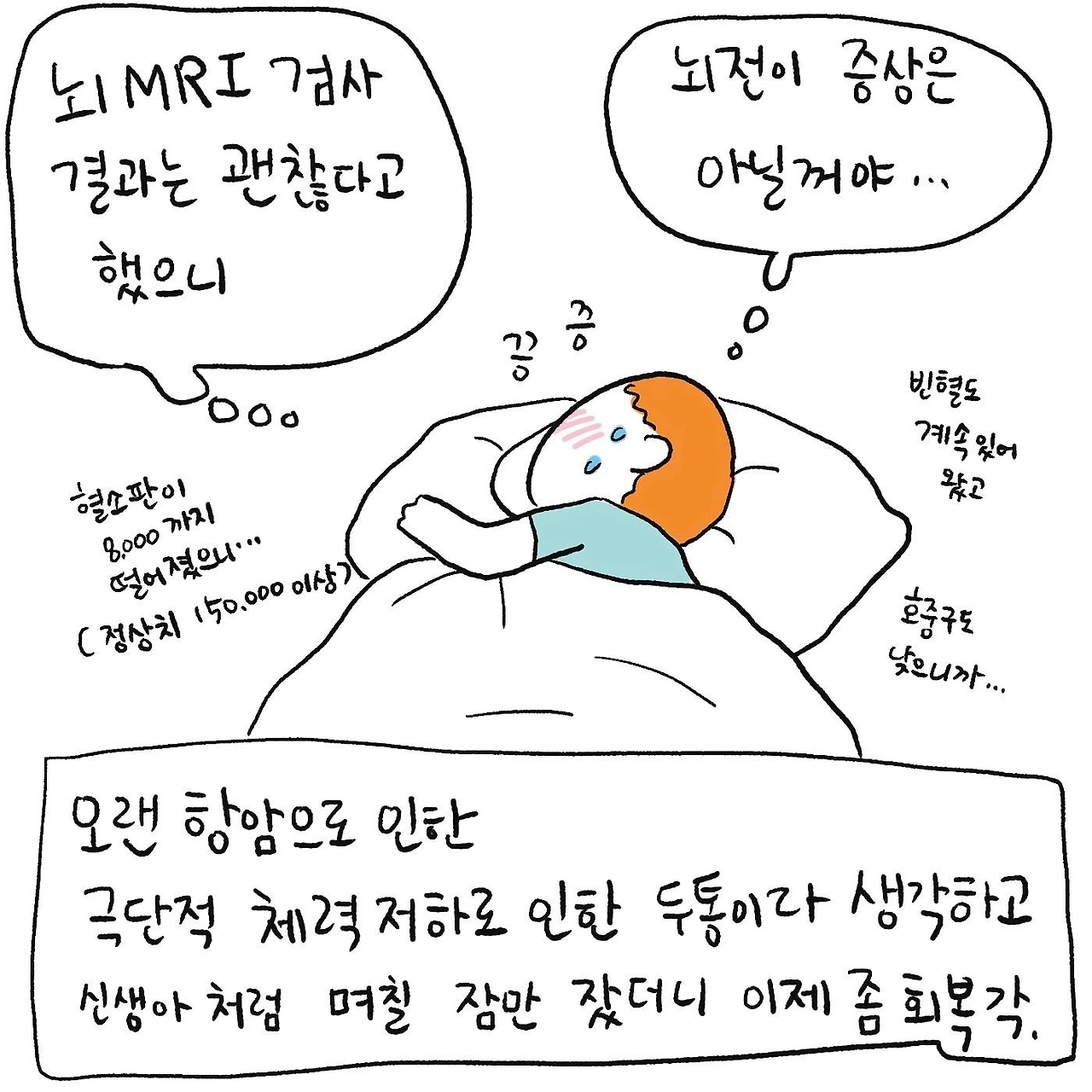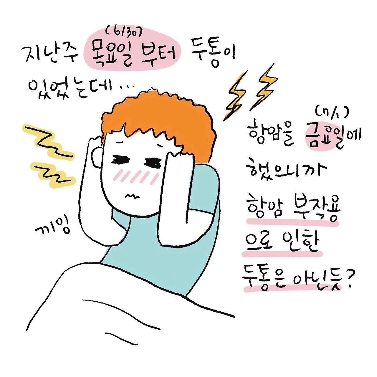 #삼중음성유방암 #유방암4기 #4기암환자 #항암치료 #두통 #암환자일상 #투병툰 #항암부작용 #아만자 #카보안녕 #실비면책기간시작