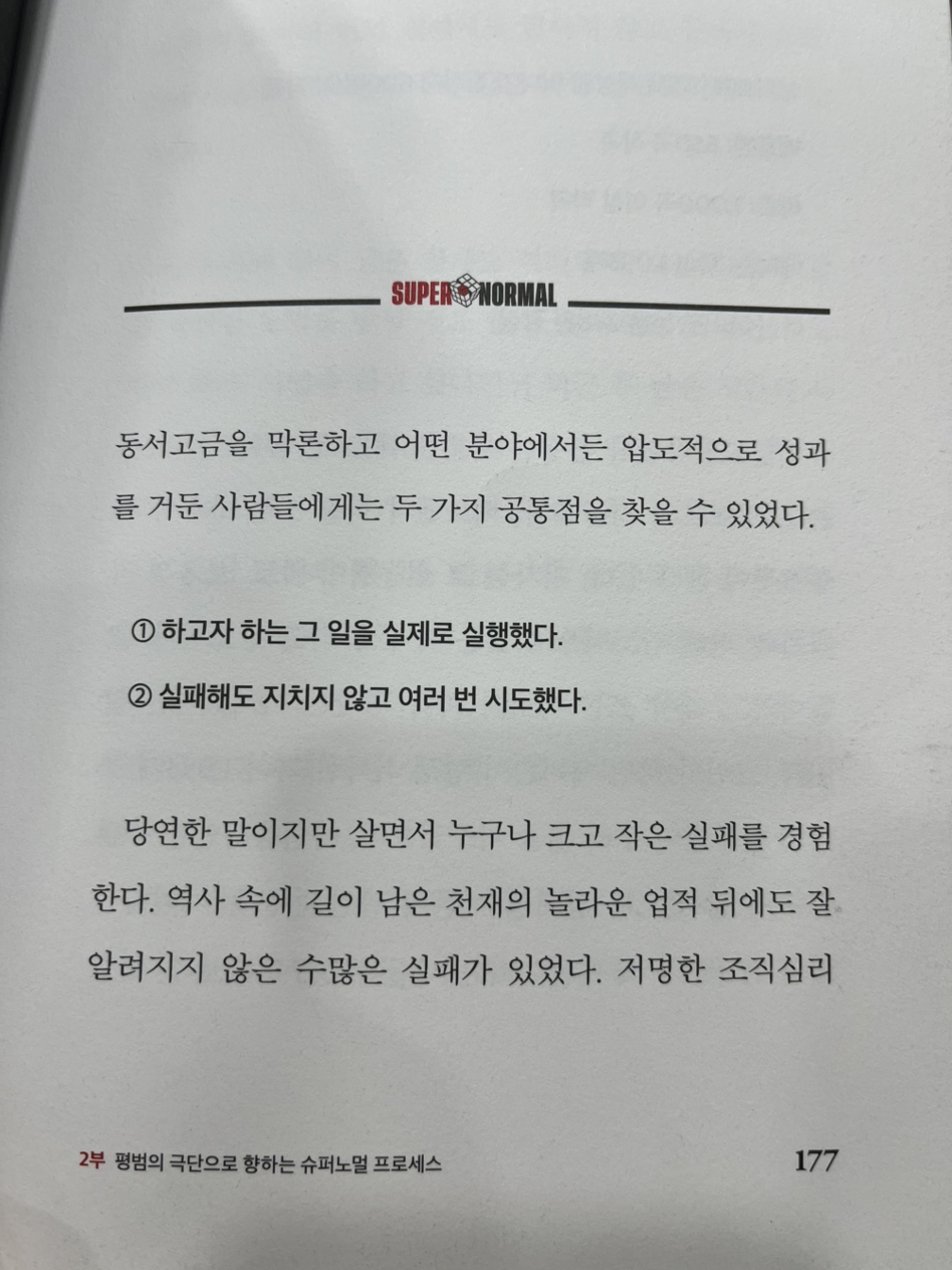 이 책의 골자는 우리같이 평범한 사람들이 성공할 수 있는 방법은 슈퍼노멀 프로세스라는 것.