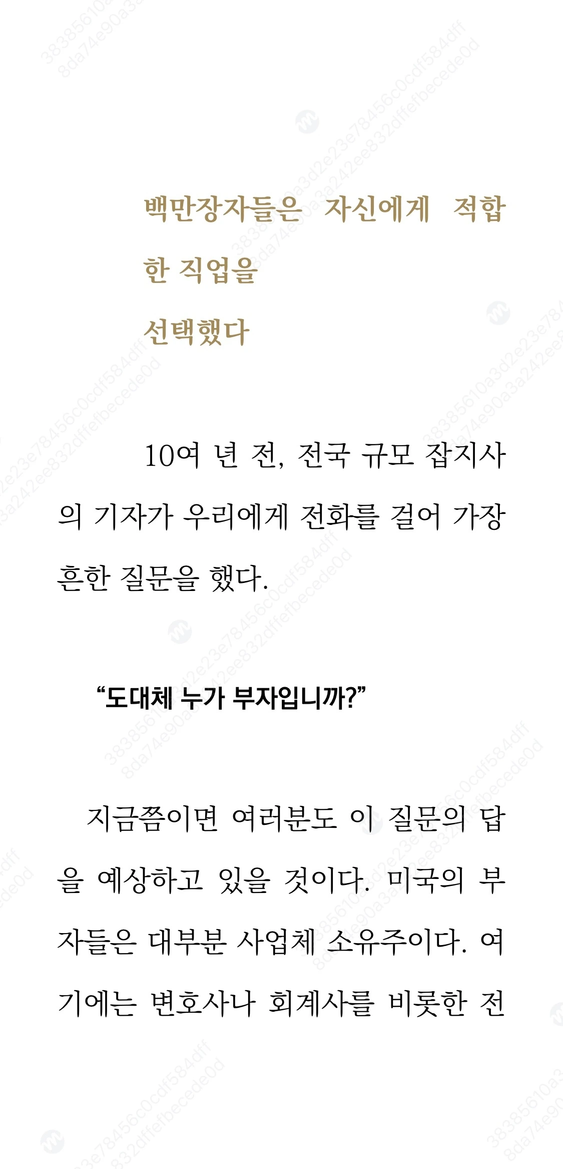 ‘이웃집 백만장자’는 저자가 20년 동안 실제 백만장자들을 인터뷰해 그들의 삶과 습관을 분석한 책이다. 많은 사람들이 상상하는 부자의 이미지와 실제 백만장자의 모습은 이 책에서 극명하게 갈린다.