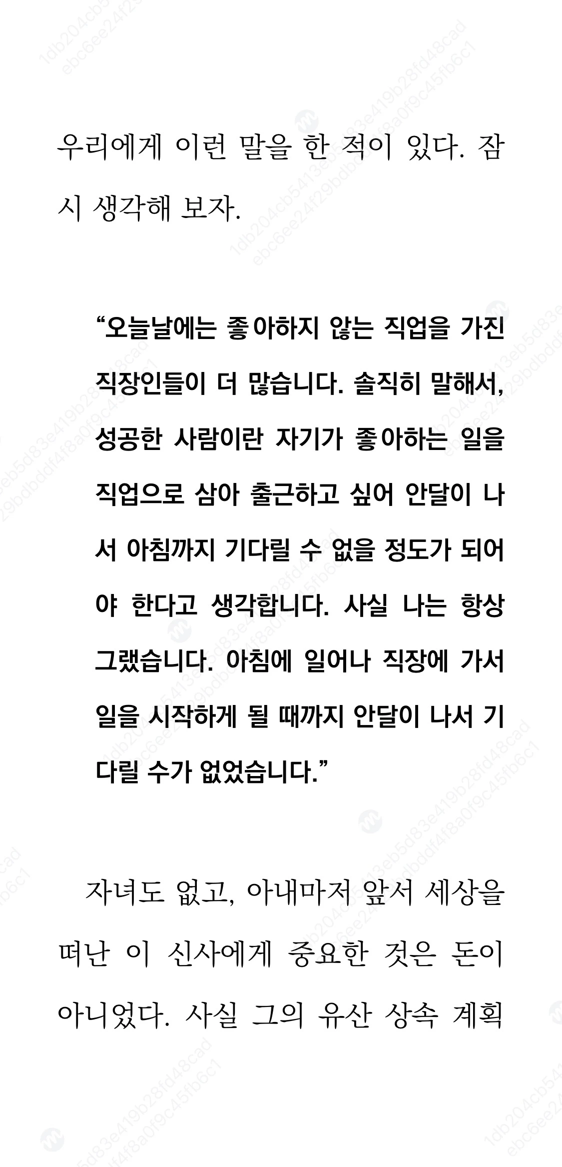 부는 애지중지 아껴 드는 에르메스가 아니라, 범퍼에 기스가 나도 신경 쓰지 않고 타는 소나타이며 돈이 아니라 시간과 공간의 자유고, 타인의 기준이 아니라 나를 얽매는 모든 멍에로부터의 탈출이다.