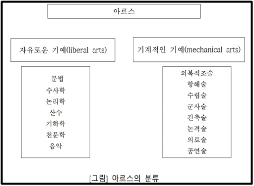 먼저 ‘예술’이라는 단어를 살펴보자. 한자를 보면 ‘기술 예’와 ‘기술 술’이 합쳐져 있다. 기술과 기술이 합쳐진 단어라면 단순한 기술자와 예술가의 차이는 무엇일까? 예술의 어원을 이해하면 위 질문 답변에 조금은 가까워 질 수 있다. 아주 예전에는 ‘예술’이 라틴어 아르스에서 출발했는데, 이는 그리스어 테크네를 번역한 단어로, 단순히 ‘기술’을 의미했다. 군사술, 의술, 건축술 등도 모두 ‘아르스’에 포함되었으며, 지금처럼 ‘예술’이 인간의 감정을 건드리는 학문적 영역으로 자리 잡은 것은 훨씬 뒤의 일이다.