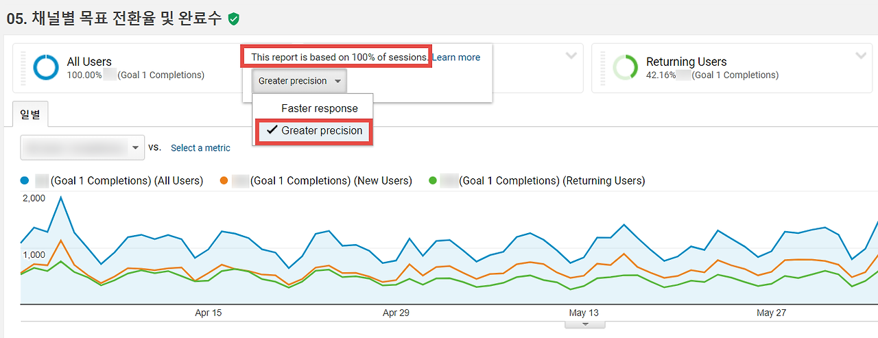 샘플링 때문에 분석을 못하겠다 라는 건 비겁한 변명입니다. 완벽한 데이터란 있을 수 없습니다. 비즈니스의 상황과 데이터의 추이를 보면서 적절한 도구를 찾는 게 그로스 해커의 역할입니다. 다행히 구글 개발진이 샘플링 이슈를 인지하고 있는지, 예전에 비해 샘플링이 덜 발생하고 있다고 합니다. 어떻게 보면 샘플링은 유료 사용을 유도하려는 구글의 전략인 듯 싶기도 합니다.