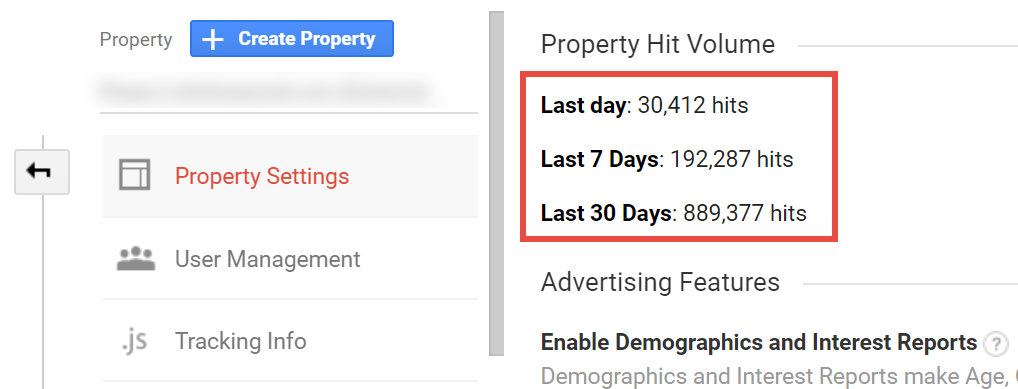 애널리틱스 표준 : 속성(Property) 수준에서 사용 중인 기간에 세션 50만 회