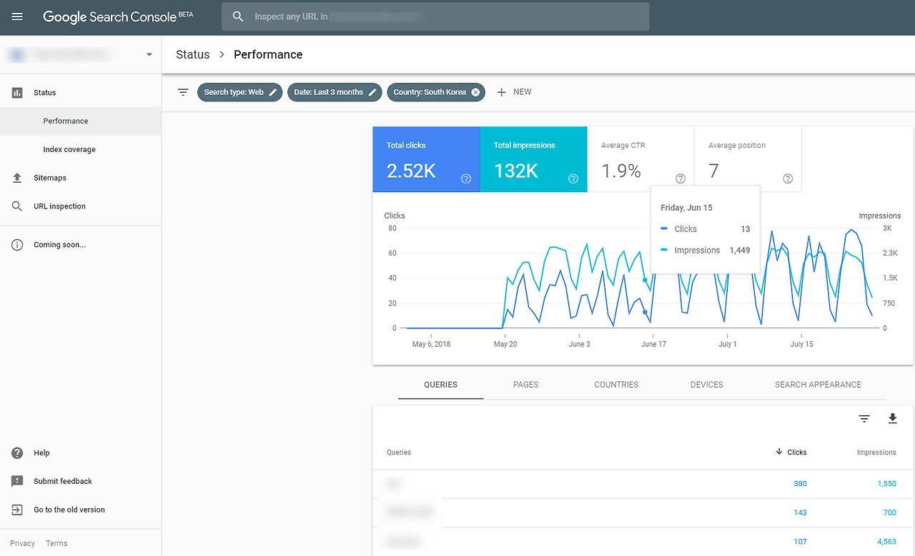서치 콘솔을 적용하면 구글 오가닉 검색어를 알 수 있습니다. 하지만 적용을 해도 모든 검색어를 보여주지 않습니다. 서치 콘솔은 구글 오가닉 검색어 중에서 개인정보가 포함된 검색어 혹은 검색량이 매우 적은 경우 ‘Other’라는 이름으로 묶어서 보여줍니다. 구글 오가닉 검색어 비중이 높아진다는 것은 긍정적인 신호입니다. 광고에 돈을 쓰지 않아도 무료 유입 트래픽이 많아진다는 의미니까요. 여기서 멈추지 마시고 오가닉 키워드가 구체적으로 무엇인지 서치 콘솔을 통해 체크하시기 바랍니다.