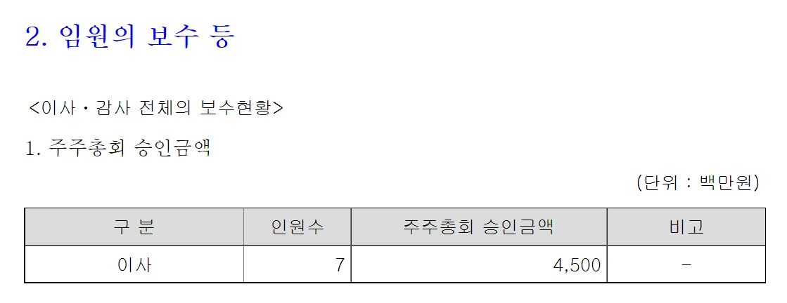 특정 기업의 임원 보수 금액