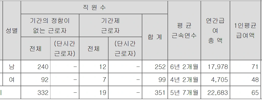 해당 기업은 1인 평균 급여액이 6천5백만 원입니다. 3천만 원에서부터 1억 원 초중반까지 급여가 책정되어 있음을 간접적으로 알 수 있습니다.