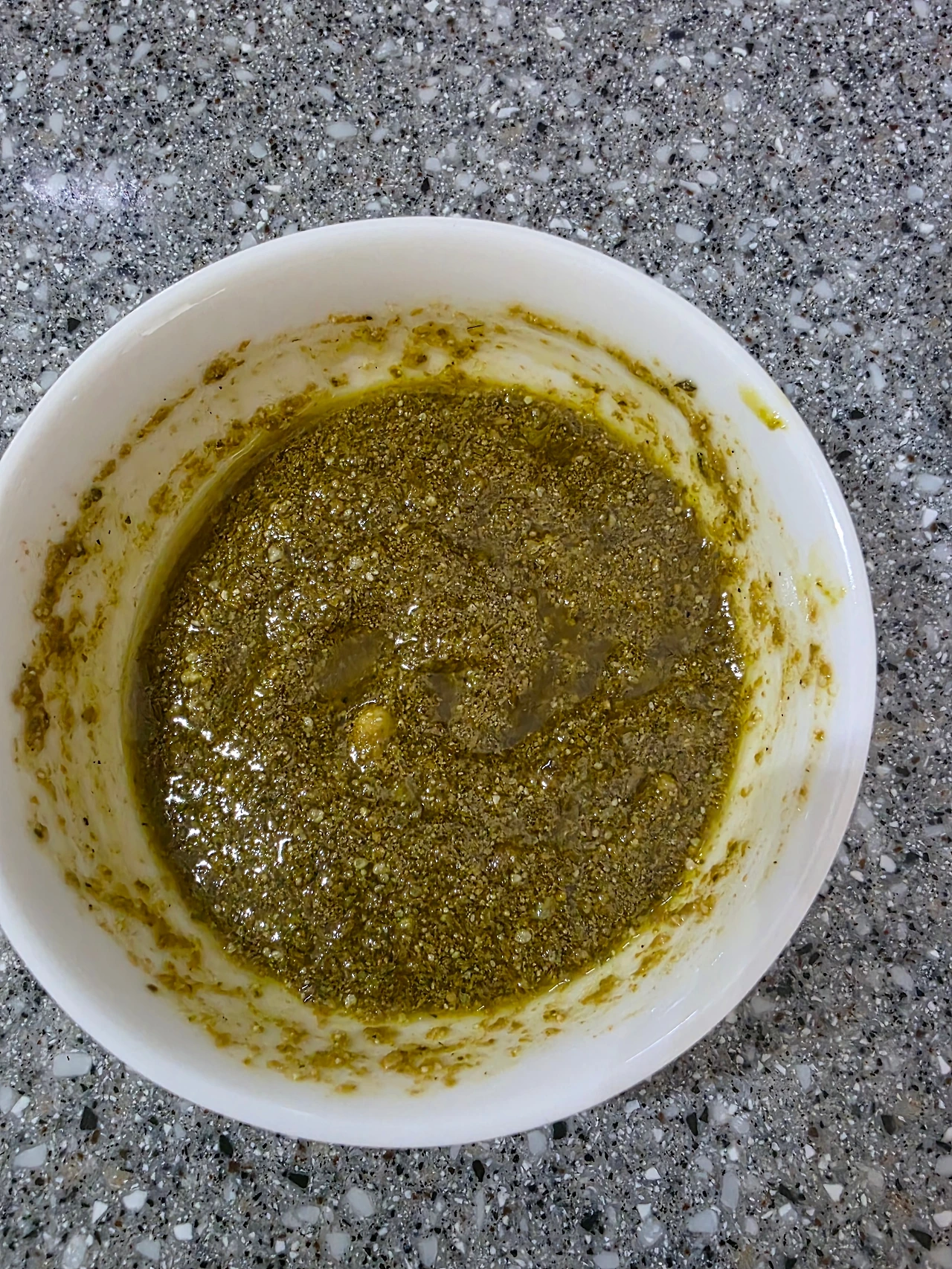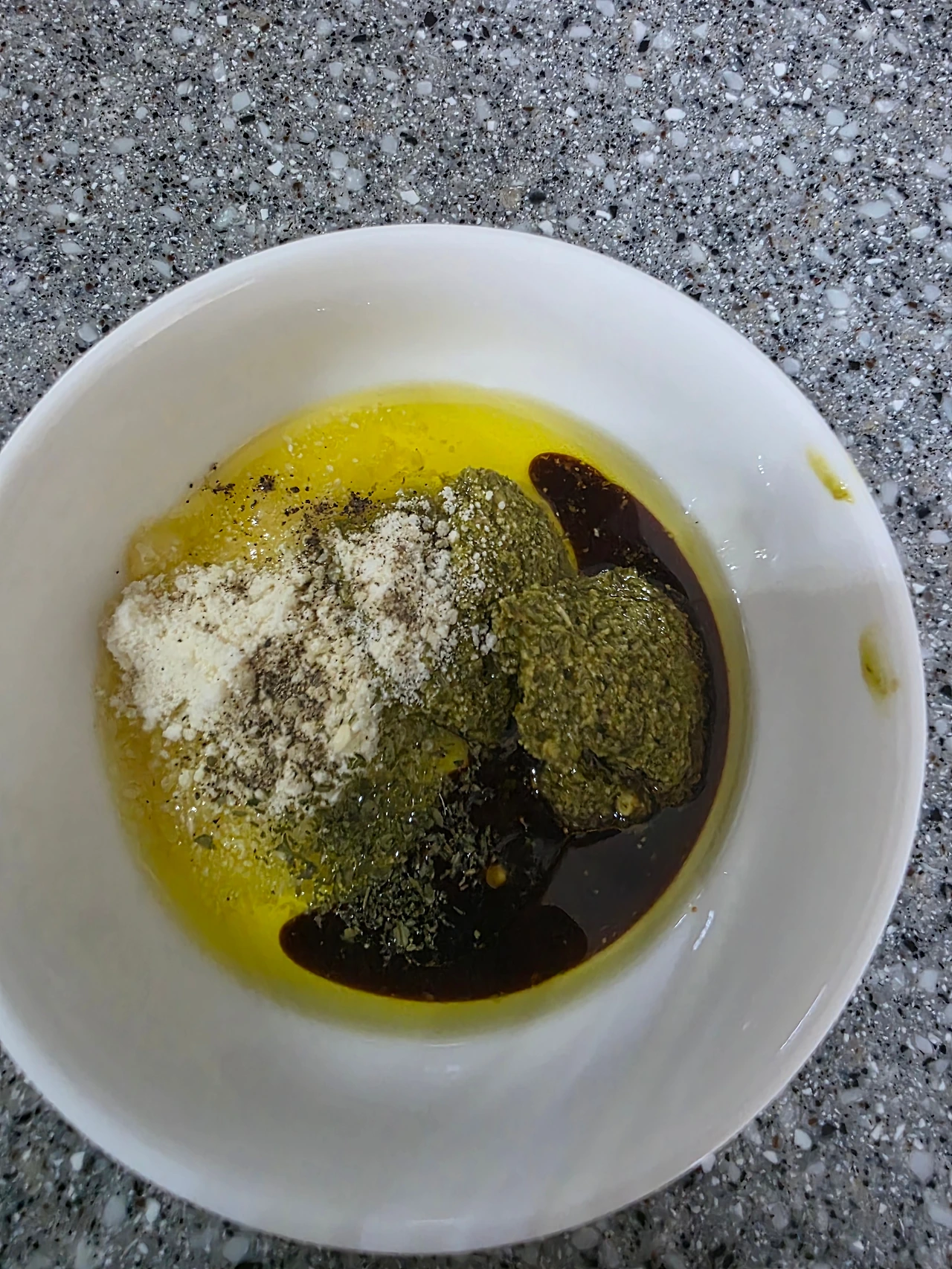 이렇게 하면 바질 어쩌고저쩌고 오일 소스가 완성된다.