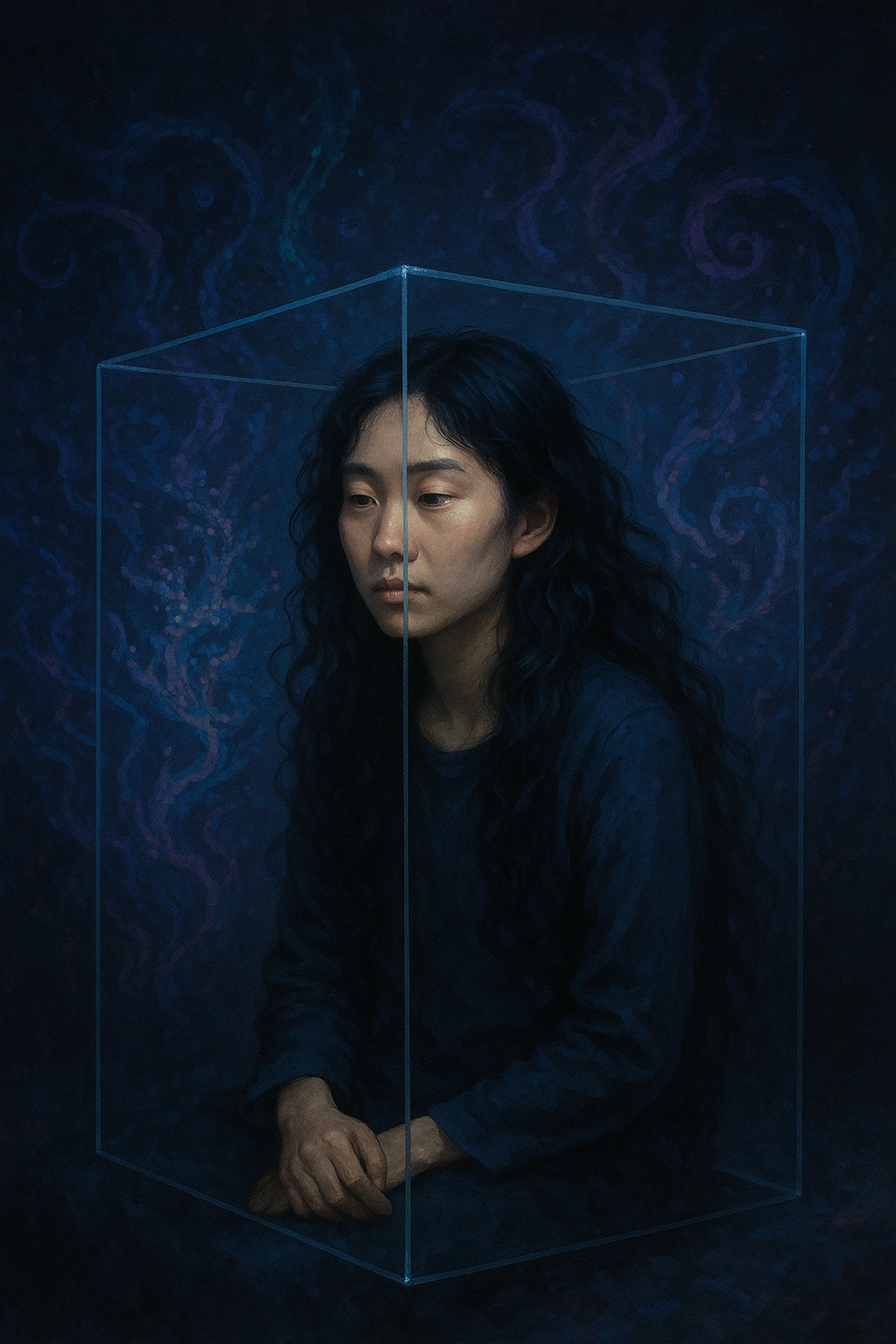 좀 더 자세히 말하자면 "나는 여기에 있어. 분명히 있지. 그런데 내가 세상에 포함되지 않고 보는 입장이니까, 내 존재가 '존재'가 아니라 '시점'처럼 느껴져. 그래서 나와 세상 사이에 무형의 투명한 벽이 있는 것 같아." 이거 완전 정신의 1인칭 시점 무한 관찰자 상태다.