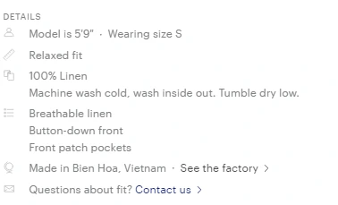 심지어 제품별 제조공장도 공개한다. 어느 베트남 공장에서 만들어지는지까지 알 수 있다.