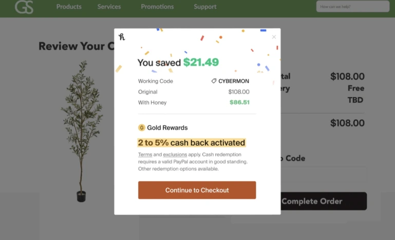 10월5일 페이팔은 2019년 인수했던 Honey와의 계정 연결을 통해 캐시백을 도입한다고 발표했다. 허니는 전자상거래에서 가격비교서비스, 할인쿠폰 검색서비스를 제공하는 업체인데, 페이팔이 2019년 40억 달러에 인수했다.페이팔이 진행했던 M&A에서 가장 큰 인수규모였다. 허니는 원래 크롬이나 인터넷 익스플로어 등 웹브라우저에 추가하는 확장 프로그램(익스텐션)으로 작동했다.