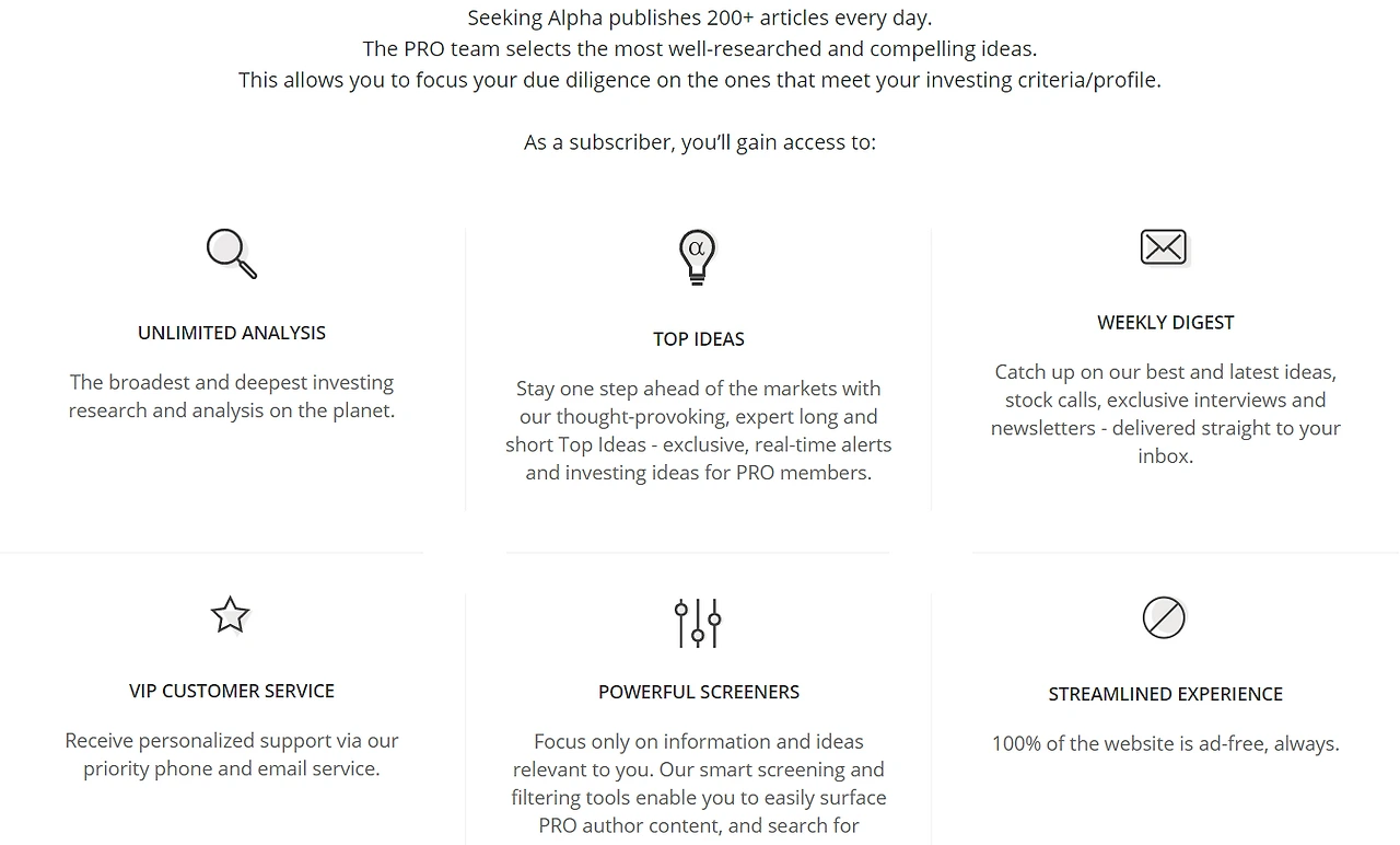 Seeking Alpha는 Trending Analysis & Trending News에서 비전문가/전문가의 의견도 한번에 볼 수 있고, 각종 지표들을 확인할 수 있다. 무료로 보는 콘텐츠는 한정적이어서, 프로 또는 프리미엄의 유료구독서비스를 통해 더 많은 콘텐츠를 확인할 수 있다. 이렇게 많은 콘텐츠를 플랫폼에 모아두면 자연스럽게 매매기능이 없더라도 투자 인사이트를 찾기 위해 플랫폼에 들를 것이다.