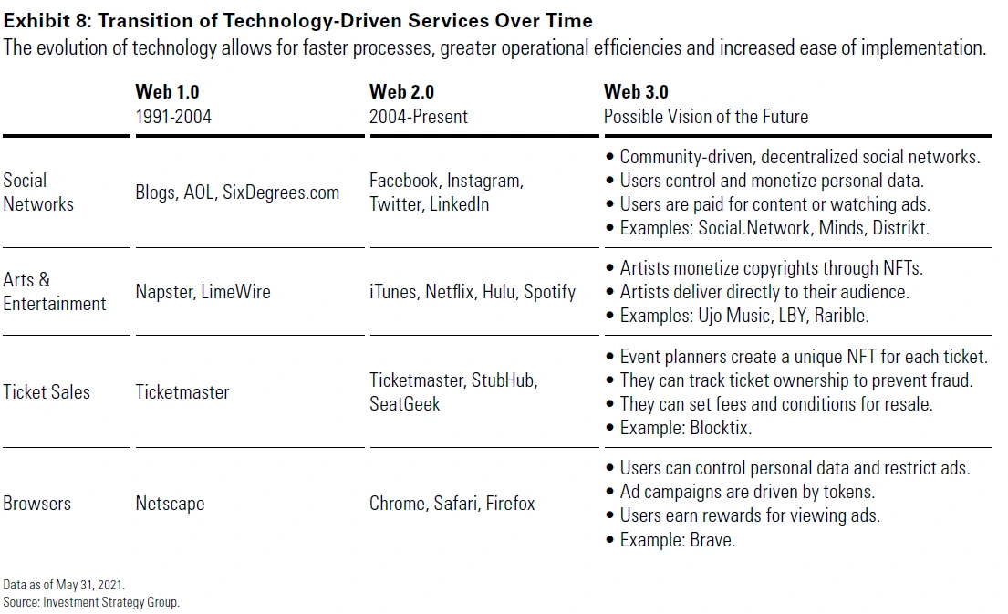 골드만삭스 "Digital Assets" 보고서에서도 웹3.0 시대에 아티스트가 청중에게 직접 자신의 작업물을 전달하고, NFT를 통해 자신의 권리를 수익화하는 모습을 전망한 바 있다.