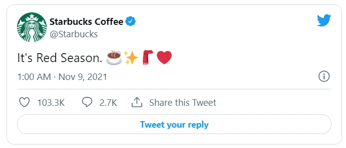 '레드' 프로모션을 알리는 스타벅스 트윗 캡쳐