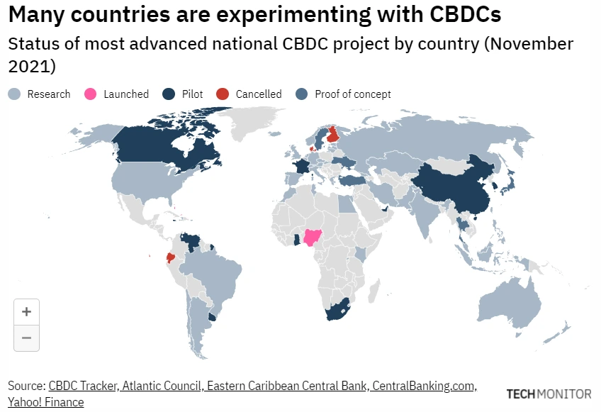 중앙은행은 소매용 CBDC와 도매용 CBDC 중 무엇을 발행할 것인가? 둘 중 하나를 시도하거나 두 개를 모두 시도할 수도 있다. 도매 CBDC는 은행의 역할 문제를 야기하지 않는다. 또한 수백만명을 대상으로 할 필요 없이 소수의 은행을 사용자로 선택할 수 있으므로 실제 환경에서 신기술을 시험해볼 최고의 방법이 될 것이다. 소매 CBDC는 중앙은행이 은행들이 아니라 일반 시민과 직접 상호작용하는 권한을 갖는 것이므로 화폐정책 개념을 바꿔놓을 가능성이 있다. 중앙은행마다 서로 다른 길을 선택할 것이다.