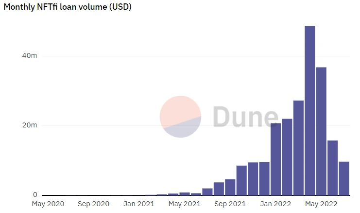 Monthly NFTfi Loan Volume(출처: Dune Analytics)