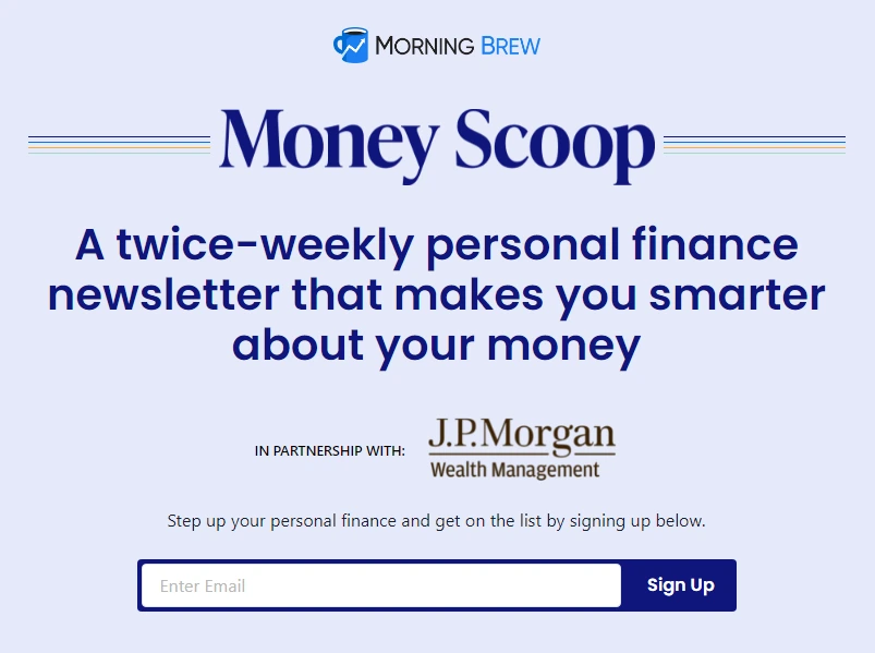이메일로 받아보는 뉴스레터 구독을 몇개 하고 있다. 그 중 하나가 Morning Brew이고, 8월18일 아침 이메일에는 Money Scoop이라는 새로운 서비스 홍보가 몇자 적혀있었다.
