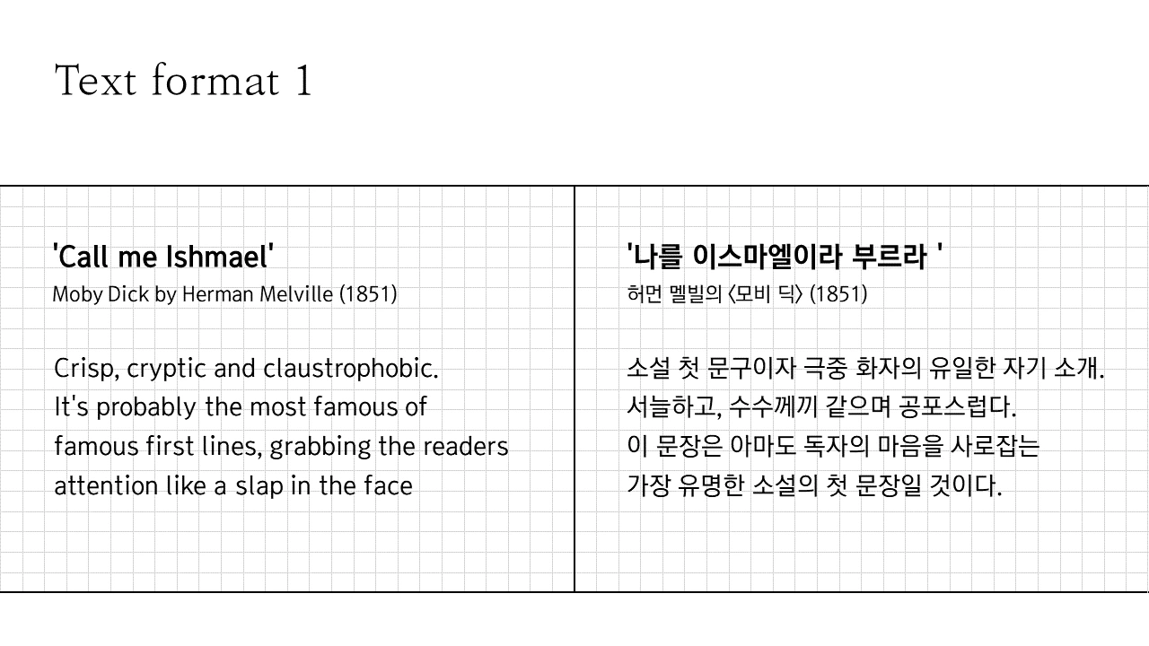 타이틀은 모두 바탕체, 그리고 내용과 작은 글씨들(출처, 주의표시 등)은 고딕체로 통일했어요.