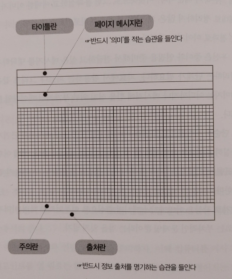 한 페이지에 어떤 내용을 담아야 하는지 간략하게 정리해놓은 노트입니다.