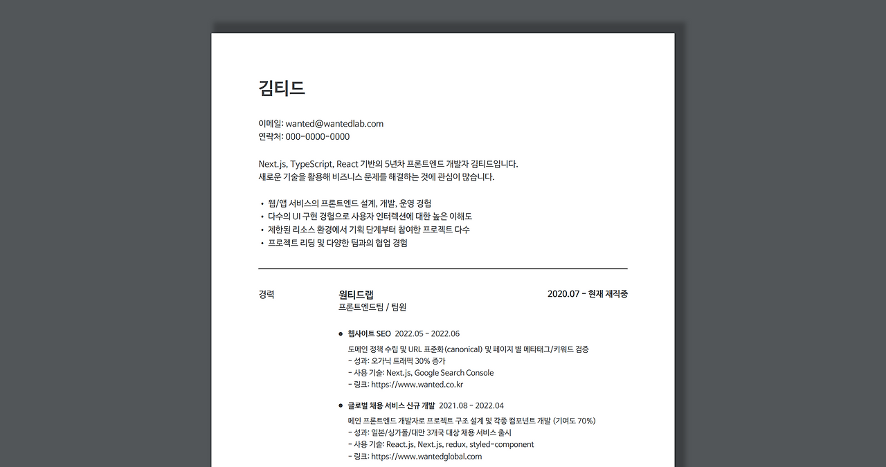 그리고 경력기술서를 통해 이전 회사에서 어떤 프로젝트를 어떤 방식으로 진행했는지