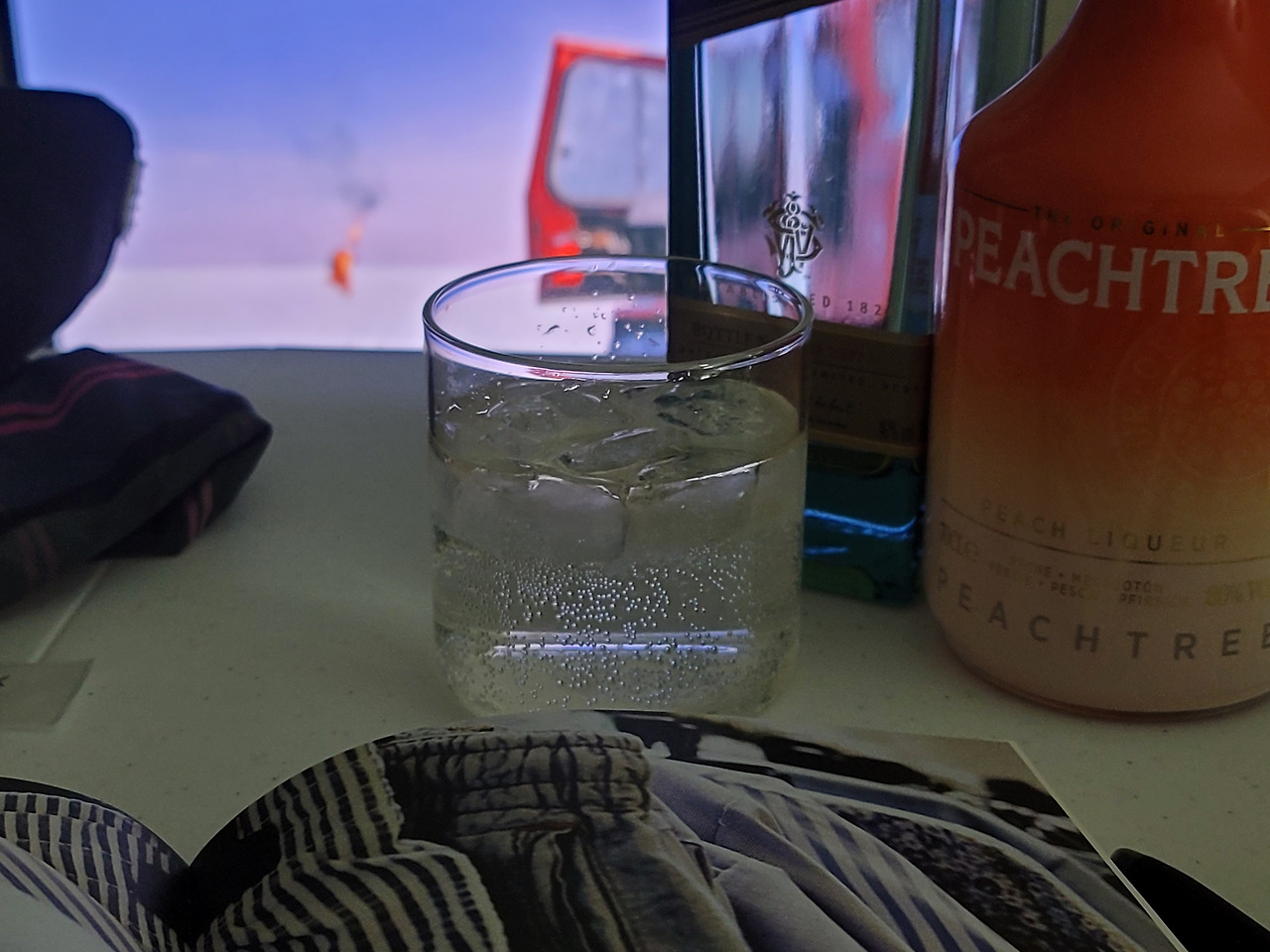 얼음 가득한 컵에 복숭아리큐르를 1/3 가량 붓고, 나머지는 사이다로 채웠다.