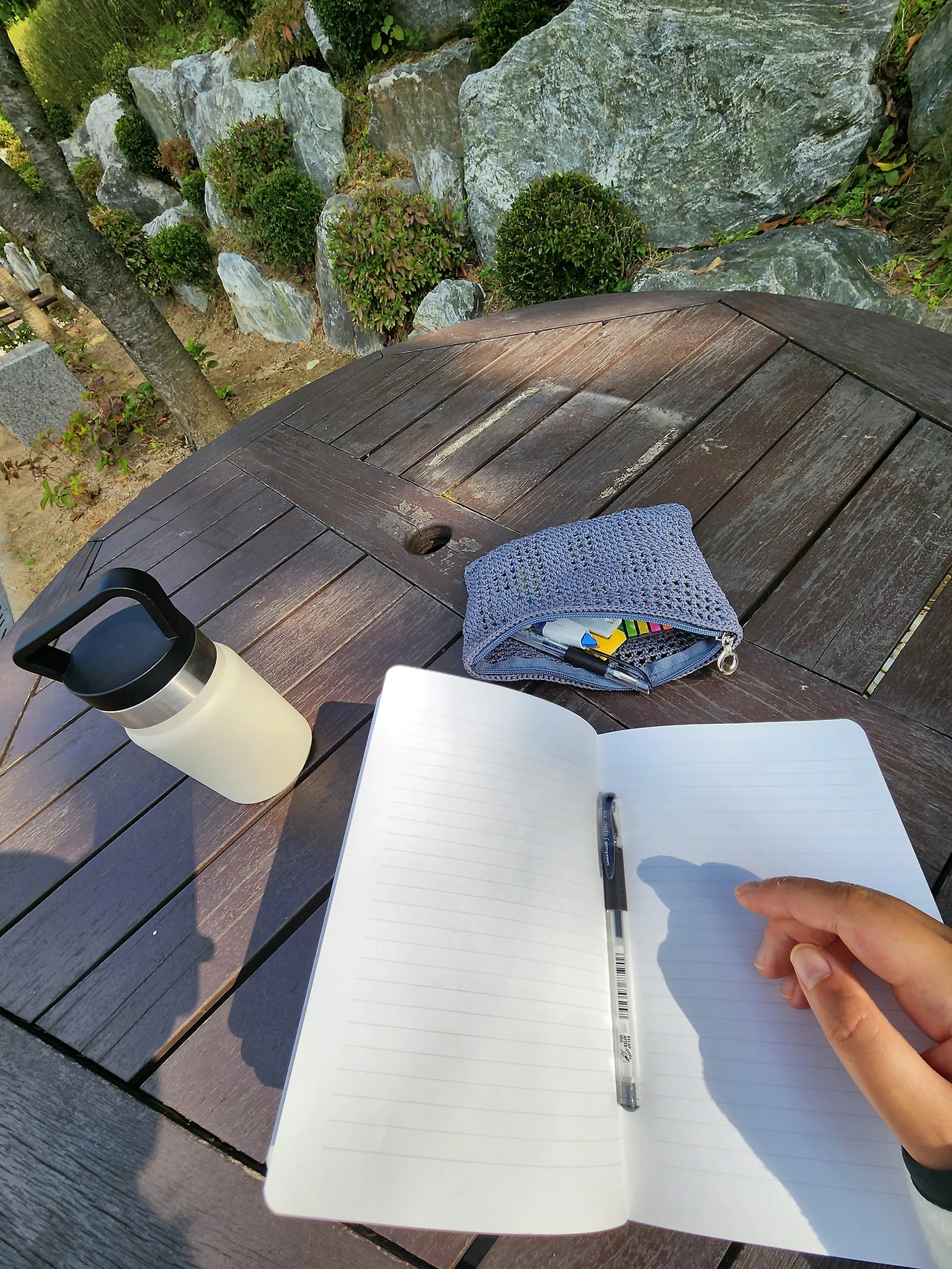 그런 파리를 두고, 난 자리에 앉았다. 파리와 합석한 것이다. 어젯밤 일기를 쓰지 않았기에, 일기장을 먼저 꺼냈다. 가져온 텀블러에 든 커피를 마시며 말이다. 커피 냄새 때문일까. 파리가 이리 껑충, 저리 껑충하더니 이내 날기 시작했다. 그리고는 보이지 않았다. 잠깐 사이 나도 파리를 잊고, 이제 일기를 쓰려 펜을 드는 순간, 귀에 아주 가까이 '윙윙'대는 소리가 들렸다. 그 파리였다. 손으로 공중을 저어 보기도 했으나 파리는 날 떠나지 않고 윙윙거렸다.