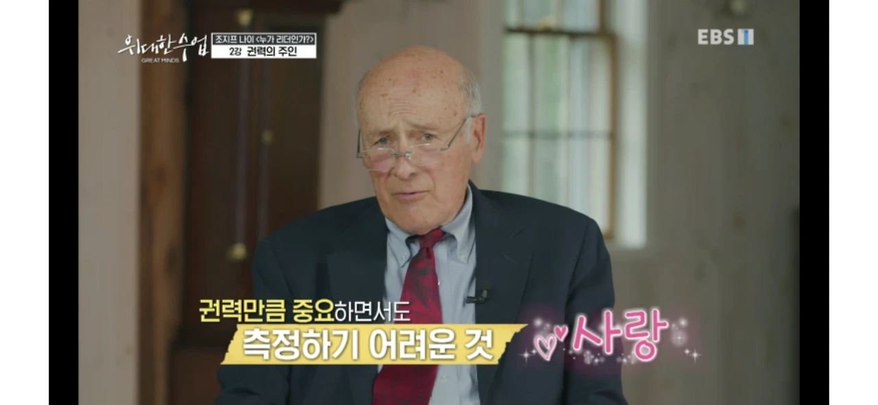 이 프로그램에서 조지프 나이 교수는 권력은 중요하면서도 측정하기 어렵다고 하면서, 비슷한 것으로는 '사랑'이 있다고 급 발언을 했다. (문맥상 응??? 사랑?)