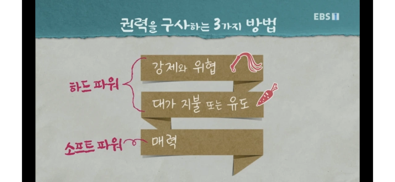 얼마전 EBS에서 방영한 '위대한 수업'에 나오는 조지프 나이의 수업에서도 '권력'에 대한 이야기가 나오더라. (위대한수업 - 권력의 주인 편)