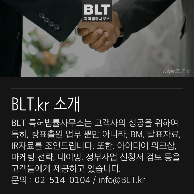 문의 : BLT특허법률사무소 www.BLT.kr / 02-514-0104