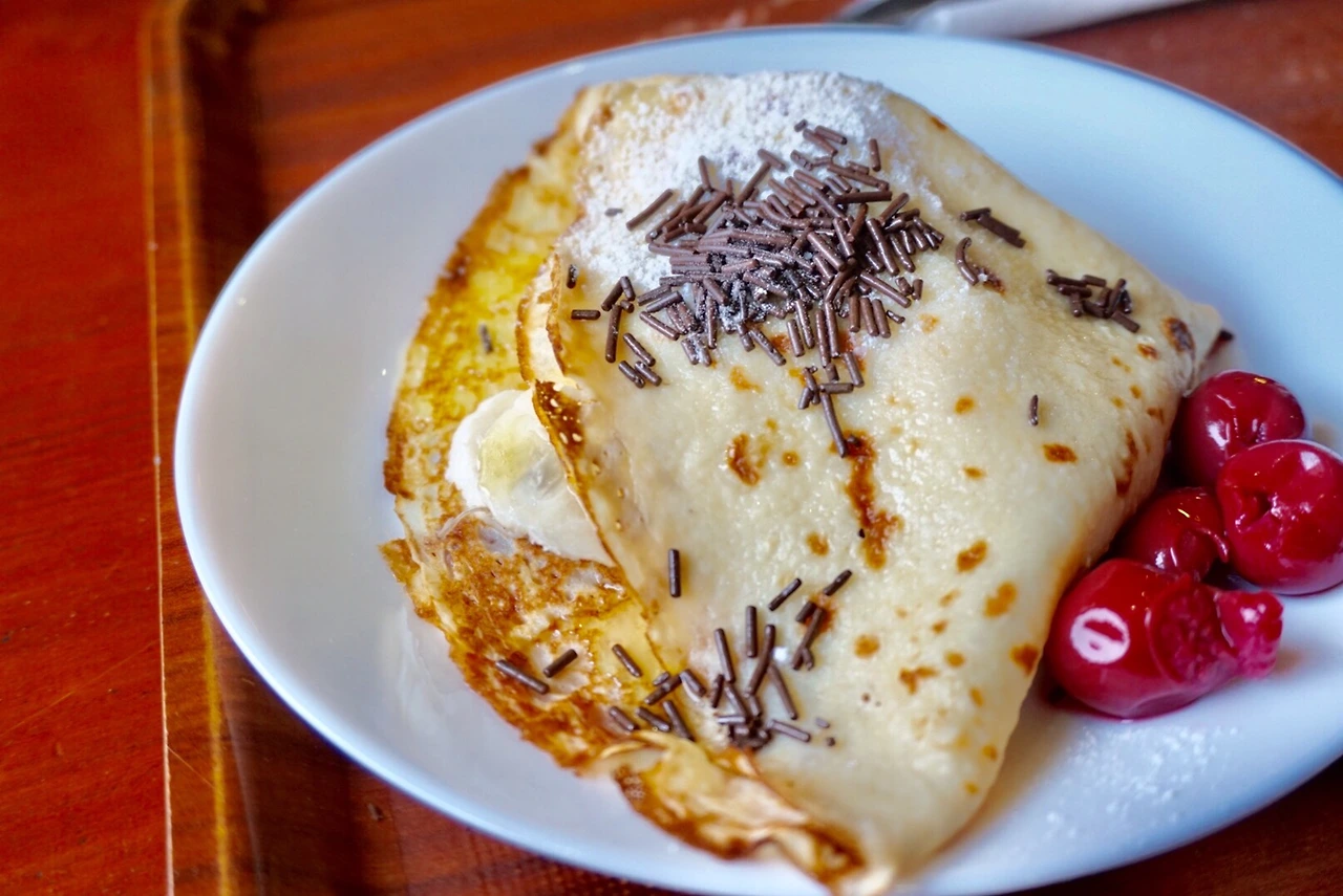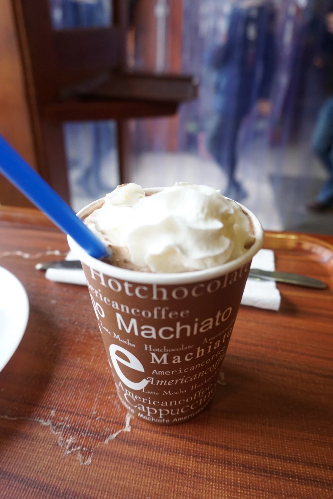 팔라친타의 종류는 굉장히 다양했고, 달콤한 맛과 솔티드한 맛으로 나뉘어있었다. 정확한 메뉴는 기억이 나지 않지만 바나나가 함께 있는 달콤한 맛 팔라친타와 핫초코 한 잔을 주문했다. 디저트 하나와 음료 한 잔을 주문했는데 우리 돈으로 3~4천원 정도 지불한 것 같다. 정말 저렴하게 먹을 수 있었다. 주문한 메뉴가 나왔고 비주얼은 특별하기보다는 무난하게 맛있어 보였다.