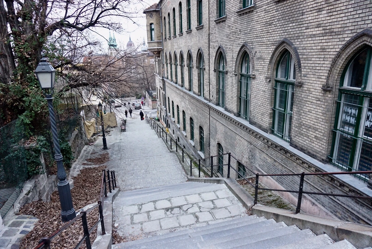 이 장소는 어부의 요새로 가는 길에 찾게 되었다. 실제로 어부의 요새와 매우 가까웠다. 가면서 골목골목을 구경하고 있었는데 긴 계단 옆 건물에 'Szabo'라는 표지판을 보게 되었다. 영화 속 자보와 스펠링이 똑같아 서둘러 계단을 내려가 보았는데 영화 속 모습과 똑같은 계단과 건물이 있었다. 한쪽 건물은 공사 중이라 영화 속 모습과 똑같지는 않았지만 계단과 레스토랑 자보 건물은 그대로 남아있었다.
