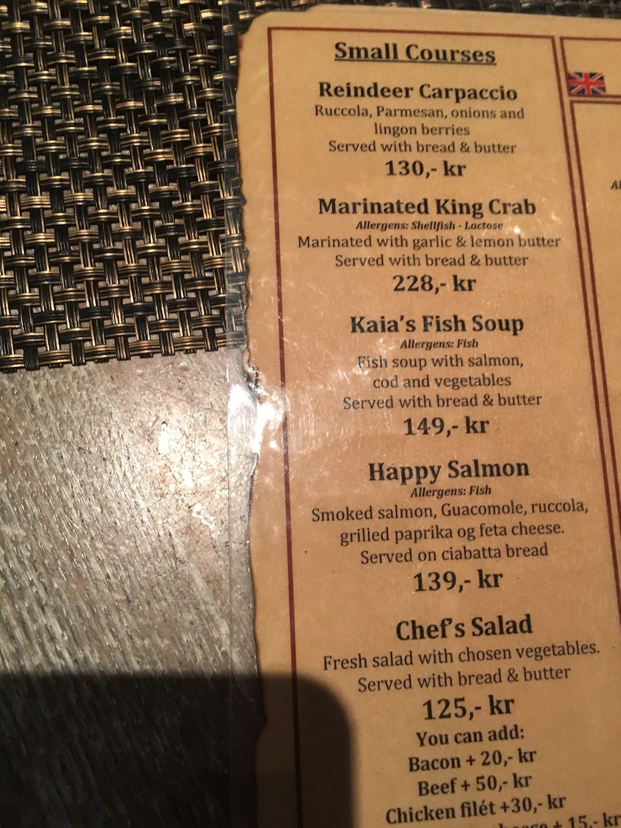 - 추천메뉴 : Happy Salmon (139NOK, 약 2만원)