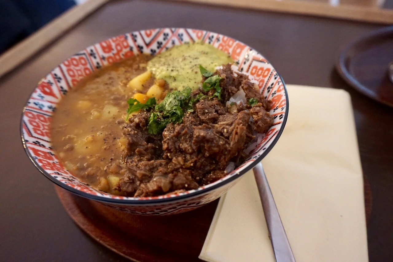 식당은 주인아주머니 혼자 운영을 하셨다. 메뉴판을 받긴 했는데 남미 음식에 대한 정보는 하나도 아는 게 없어 주인아주머니께 추천해달라고 하셨다. 아주머니께서는 오늘의 메뉴가 있는데 카레랑 비슷한 음식이라고 하셔서 그 메뉴로 먹기로 했다. 요리를 하시면서 아주머니께서 어느 나라에서 왔냐고 물어보셨다. 한국이라고 하자 갑자기 능숙하게 '안녕하세요'라고 인사하셔서 정말 깜짝 놀랐다. 어떻게 한국어를 아시냐고 여쭈어보았더니 원래 외국어를 배우는 것에 관심이 많아 능숙하지는 않지만 8개 국어를 한다고 하셨다.