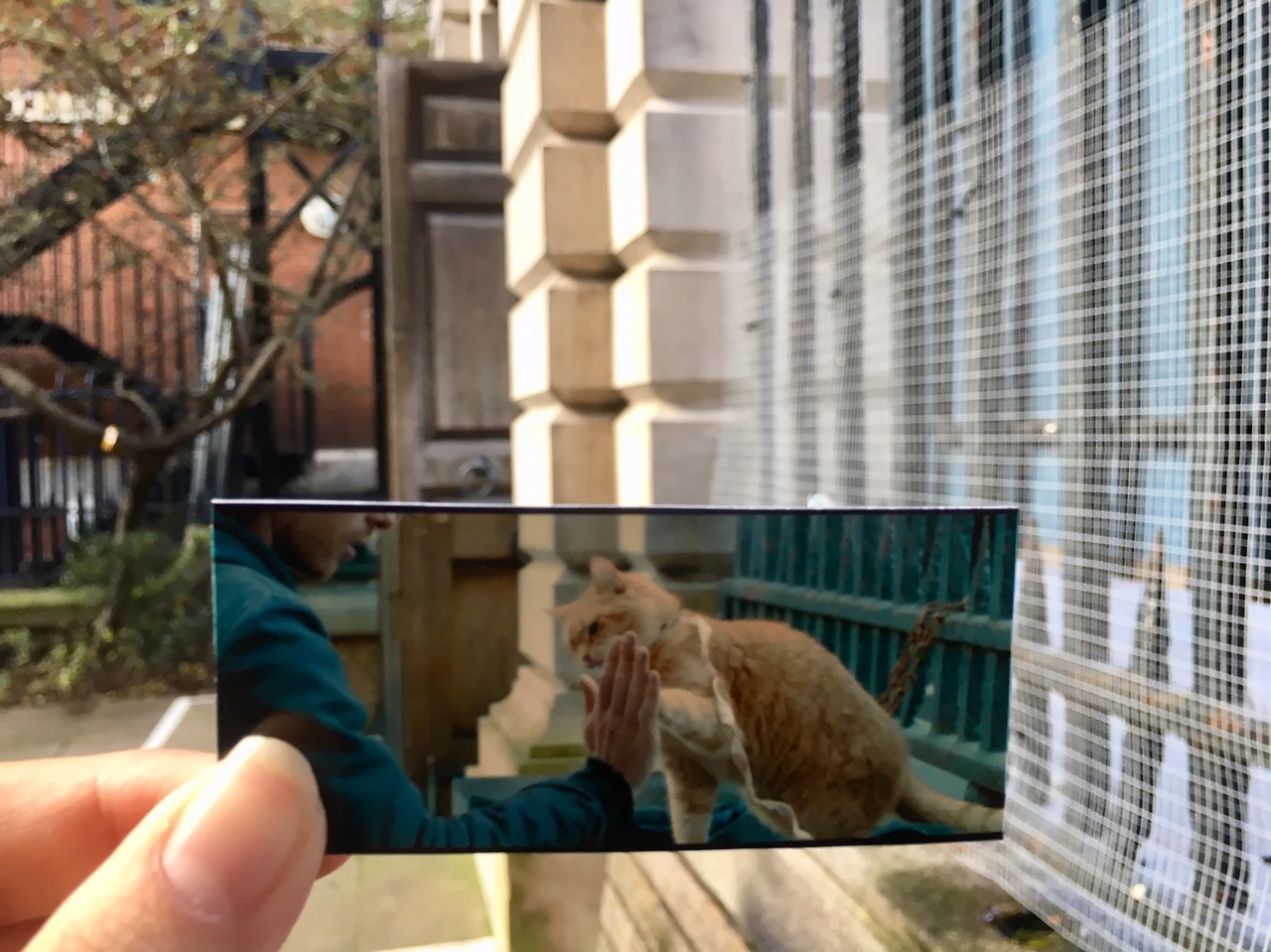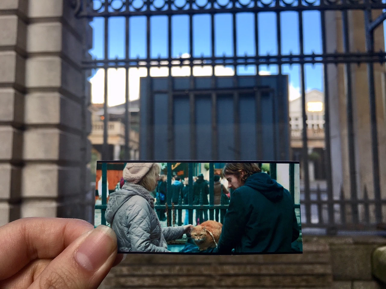 '제임스'가 '밥'을 어깨에 올리고 공연을 하러 가자 지나다니는 사람들이 '제임스'와 '밥'에게 관심을 보이는 장면이 촬영되었다. 정확한 장소는 코번트가든 역에서 코번트가든 마켓으로 가는 길에 있는 'Kick Game'이라는 신발 판매점인데 현재는 폐업했다고 한다.