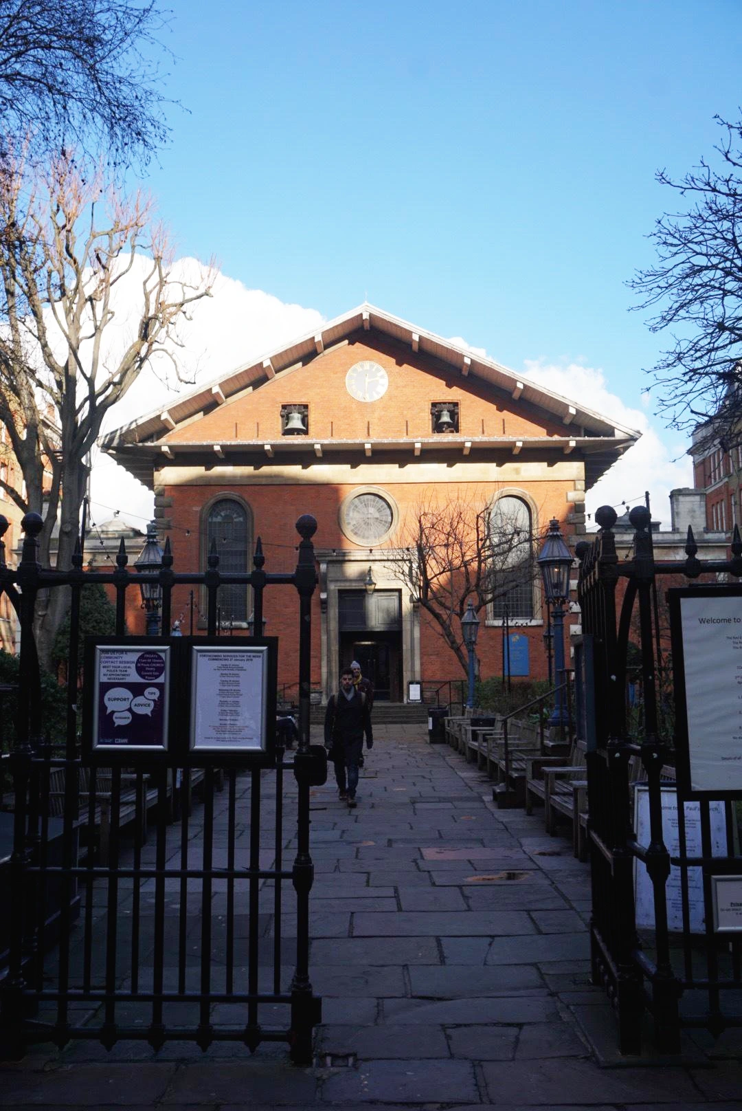'제임스'가 '밥'과 함께한 첫 공연을 성공적으로 마치고 '밥'에게 고마워하는 장면이다. 이 장면은 앞서 소개한 코번트가든 광장 쪽 입구에서 촬영된 것이다. 또한, 영화 초반부 '제임스'가 '벨'에게 노래를 부르는 장면에서 제임스가 서서 노래를 부르는 장소이기도 하다. 이 장면은 코번트가든 반대쪽 입구에서 촬영된 것이다. 세인트 폴스 교회는 무려 1633년에 건축된 교회로 종교개혁 이후 런던에 세워진 최초의 새로운 교회라고 한다.