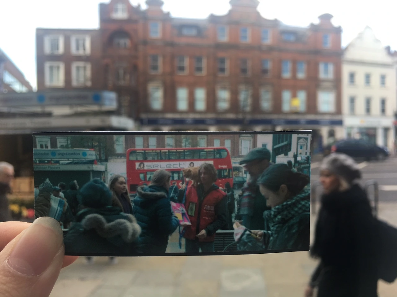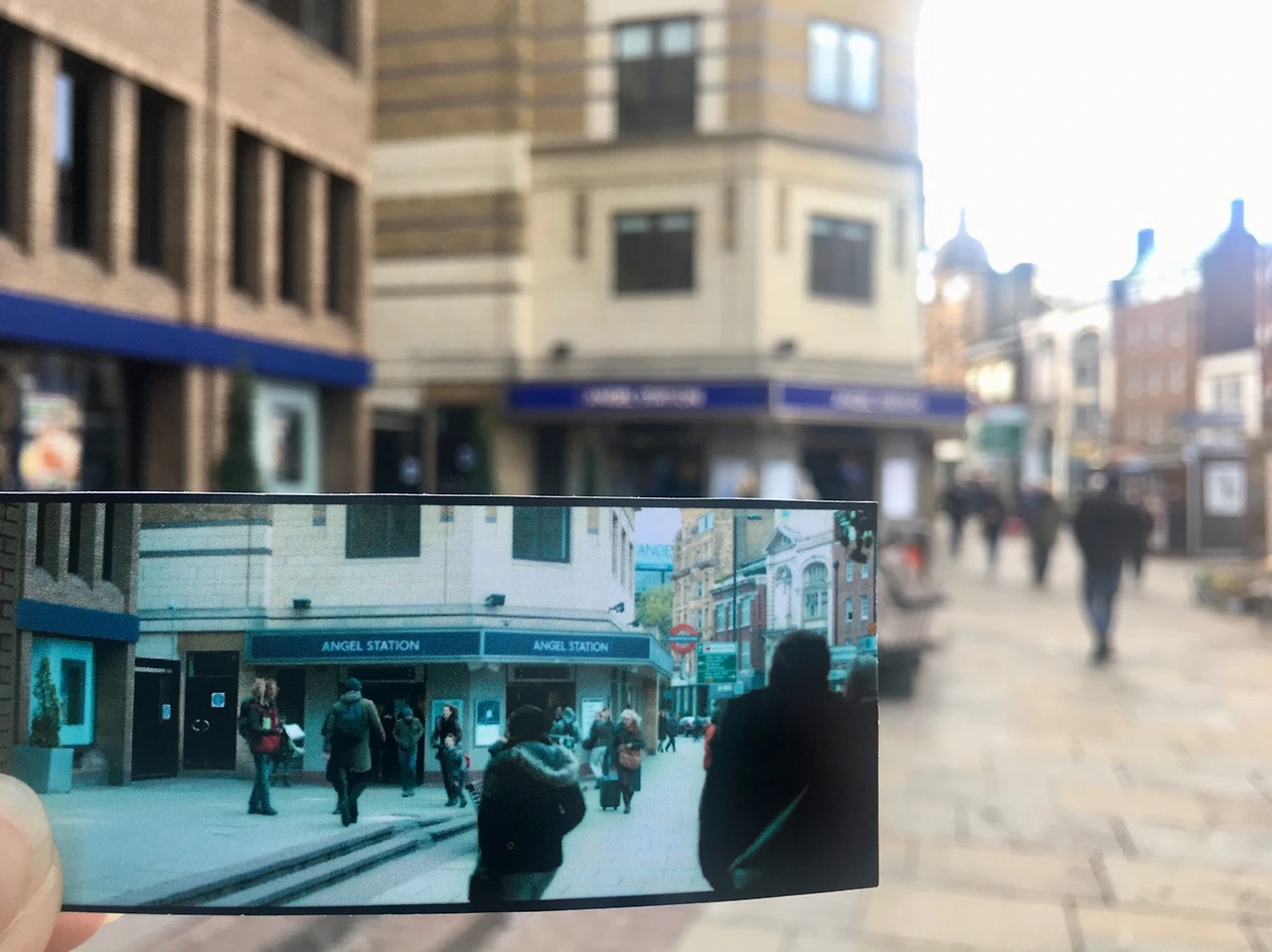 '제임스'가 돈을 벌기 위해 잡지 빅이슈를 판매하는 장면의 배경으로 등장한다. 촬영된 장소는 엔젤 스테이션에서 나오자마자 보이는 건물 바로 앞이다. 이 지역은 유명한 관광지는 없지만, 현지인들의 생활을 볼 수 있는 곳이다. 특히, 역에서 가까운 거리에 'Camden Passage (캠든 패시지)'라는 벼룩시장이 있는데 독특한 골동품이 많다고 하니 관심이 있다면 방문해보는 것도 좋을 것 같다.