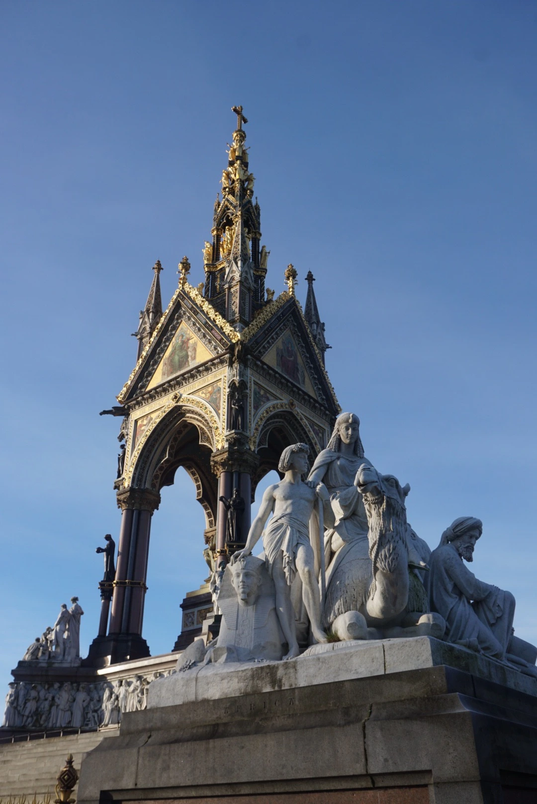 '알버트 기념비' 역시 영화의 후반부, '제임스'가 '밥'과 함께 자전거를 타고 돌아다니는 장면의 배경으로 잠깐 등장한다. '알버트 기념비'는 런던 켄싱턴 가든에서 '로열 알버트 홀' 바로 앞에 위치한 동상이다. 빅토리아 여왕이 1861년 장티푸스로 세상을 떠난 남편 알버트 공을 기리기 위해 만들었다고 한다. 제작에 10년 이상이 소요되고, 제작 비용은 12만 파운드로 현재 물가와 환율을 적용하면 한화로 약 160억 원이라고 한다. 그만큼 어마어마한 규모와 섬세함, 화려함을 자랑한다. 특히, 당시의 전통적인 4대륙인 아프리카, 아메리카, 아시아, 유럽을 상징하는 동상이 인상적이었다.