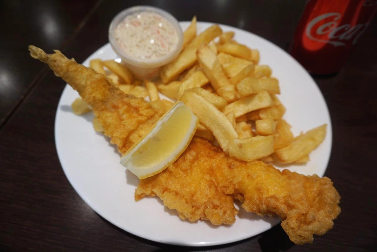 주문한 음식이 나왔는데 생각보다 생선이 커서 놀랬다. 레몬과 함께, 코울슬로 같은 음식이 함께 제공되었다. 물어보지는 않아서 무슨 생선인지는 알 수 없었다. 레몬즙을 골고루 뿌리고 한 입 먹어봤는데, 도대체 왜 맛없다는지 이해할 수 없었다. 솔직히 맛있었다. 생선 자체에도 간이 잘 배어있고, 비린 맛 하나 없이 맛있었다. 작은 생선이라는 설명에 비해 생각보다 큰 생선이 나와서 양도 적지 않았다.