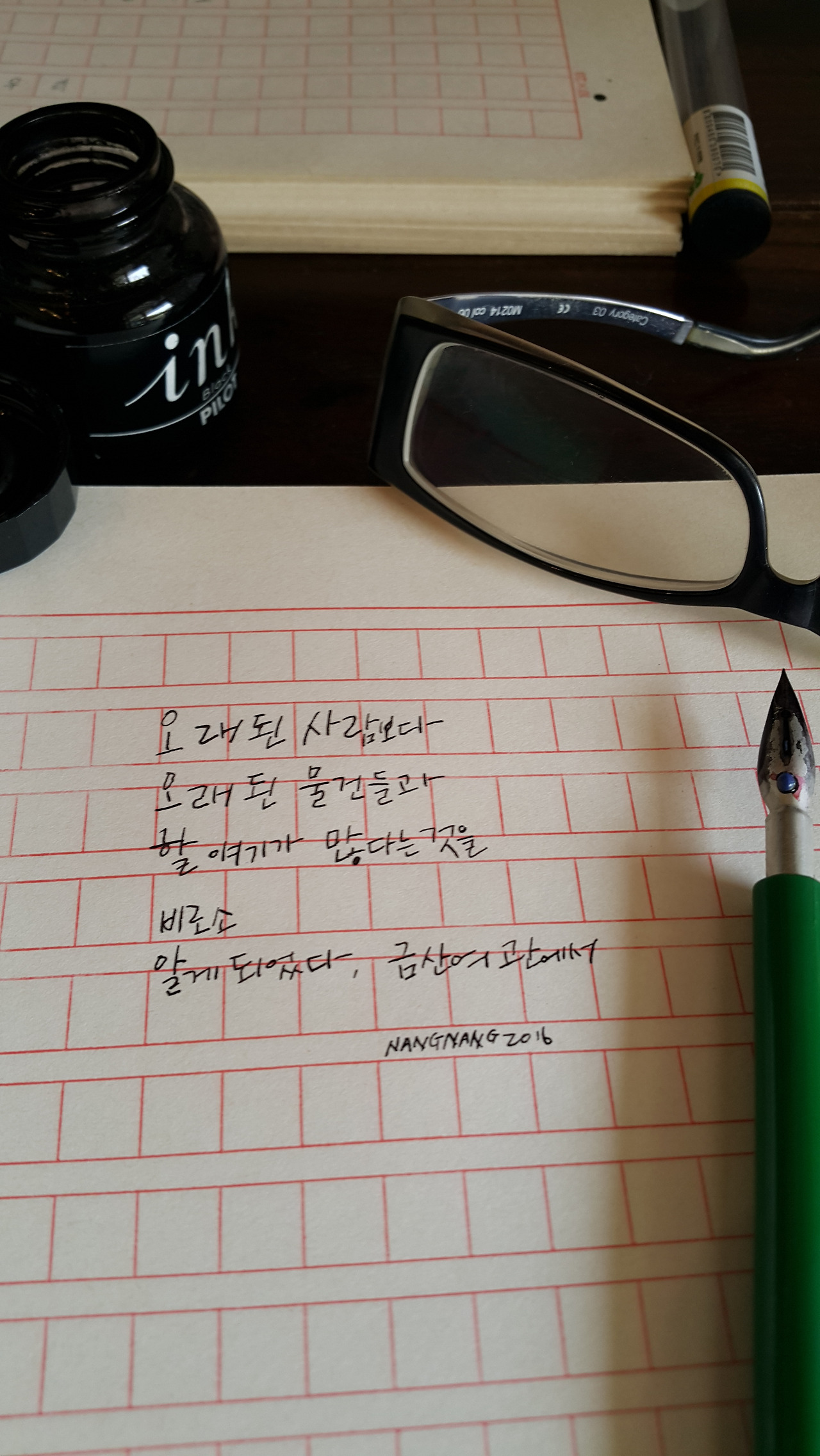 몇 십년 만에 잉크를 찍어가며 펜촉으로