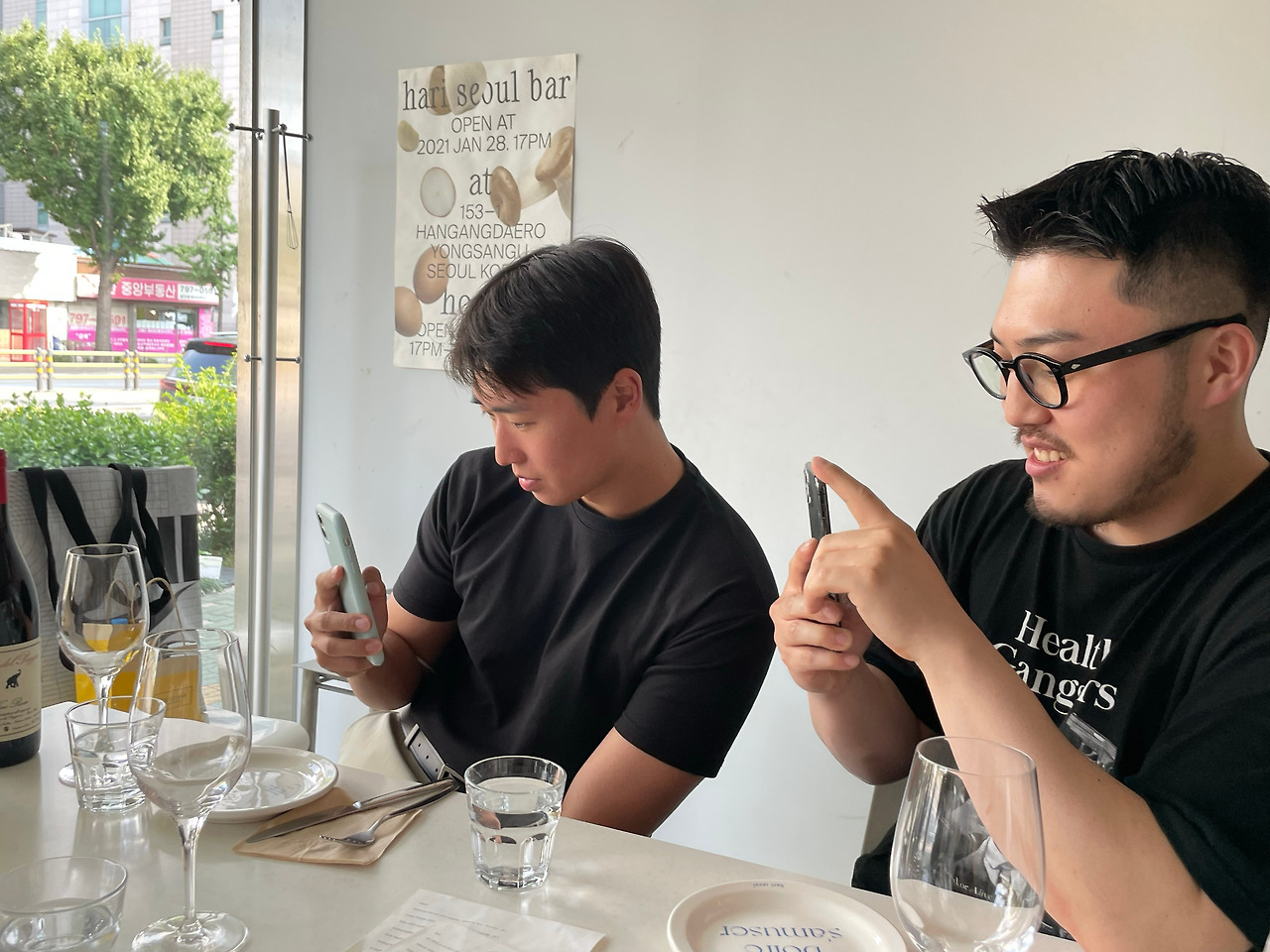 남자 넷이 카페에서 2시간 가량 수다를 떨었다. 슬슬 눈치가 보일 타이밍, "삼각지에 와인 파는 곳도 많다던데, 우리도 내추럴 와인이란 걸 한번 먹어볼까?" 도통 와인병에는 손을 잘 뻗지 않는 모임이었지만 삼각지에서만큼은 분위기 좀 내고 싶었던 것일까. 우후죽순 생겨나는 와인바 중 하나를 고르기 위해 넷은 열심히 핸드폰을 요리조리.