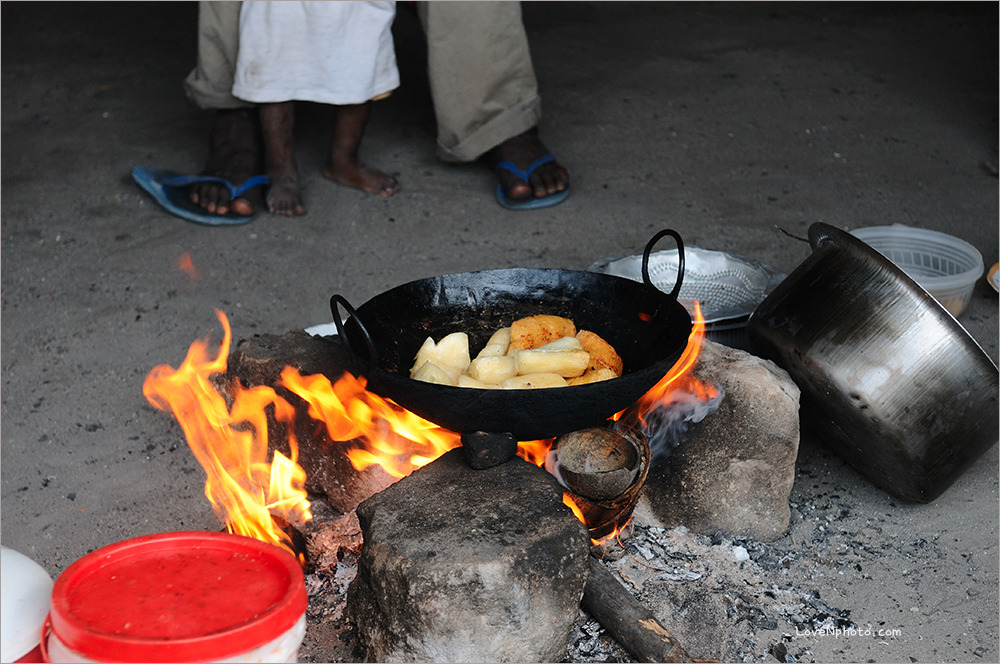 맨발로 걸어가다가 쌀집에서 일하는 자매가