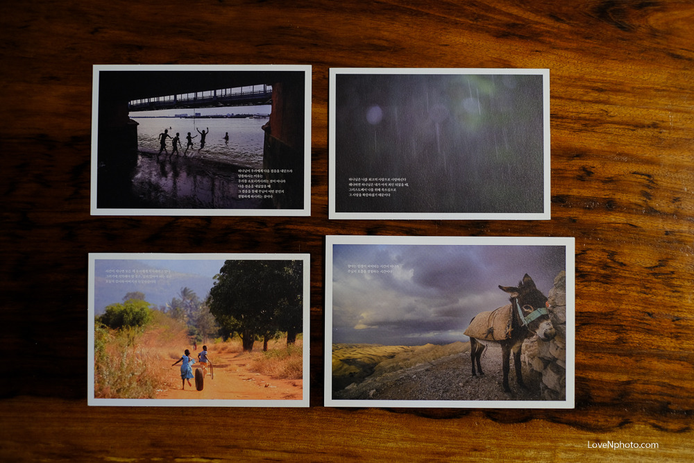 글귀들을 엽서의 사진마다 적어 놓았습니다.