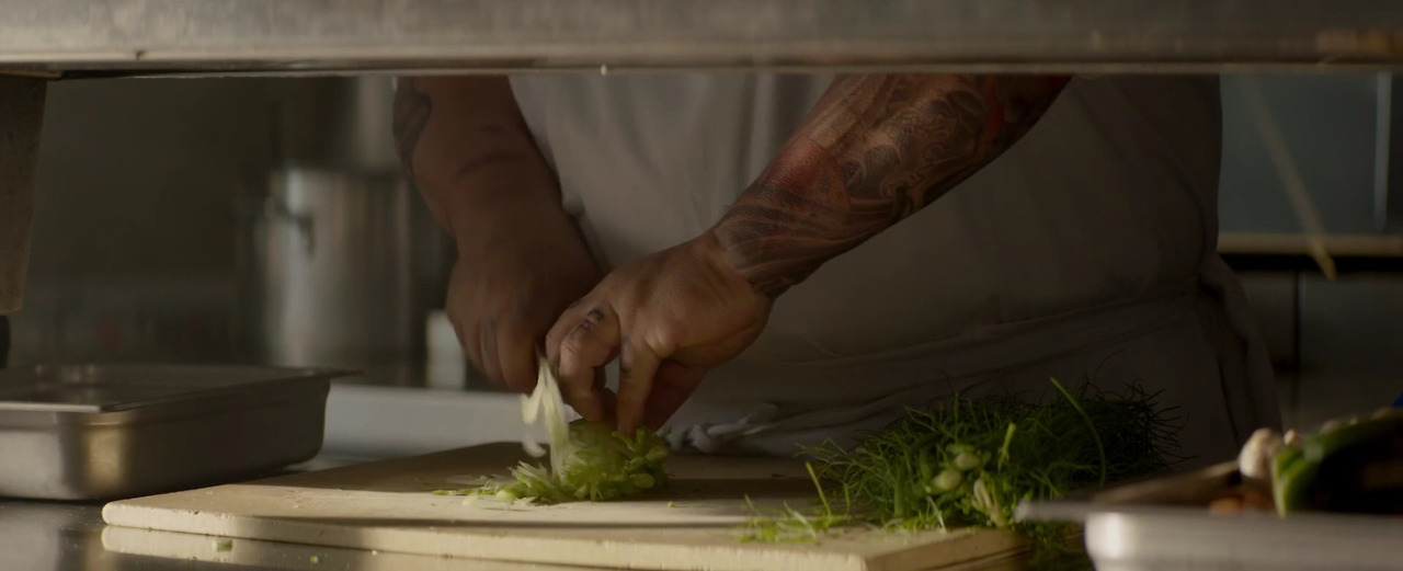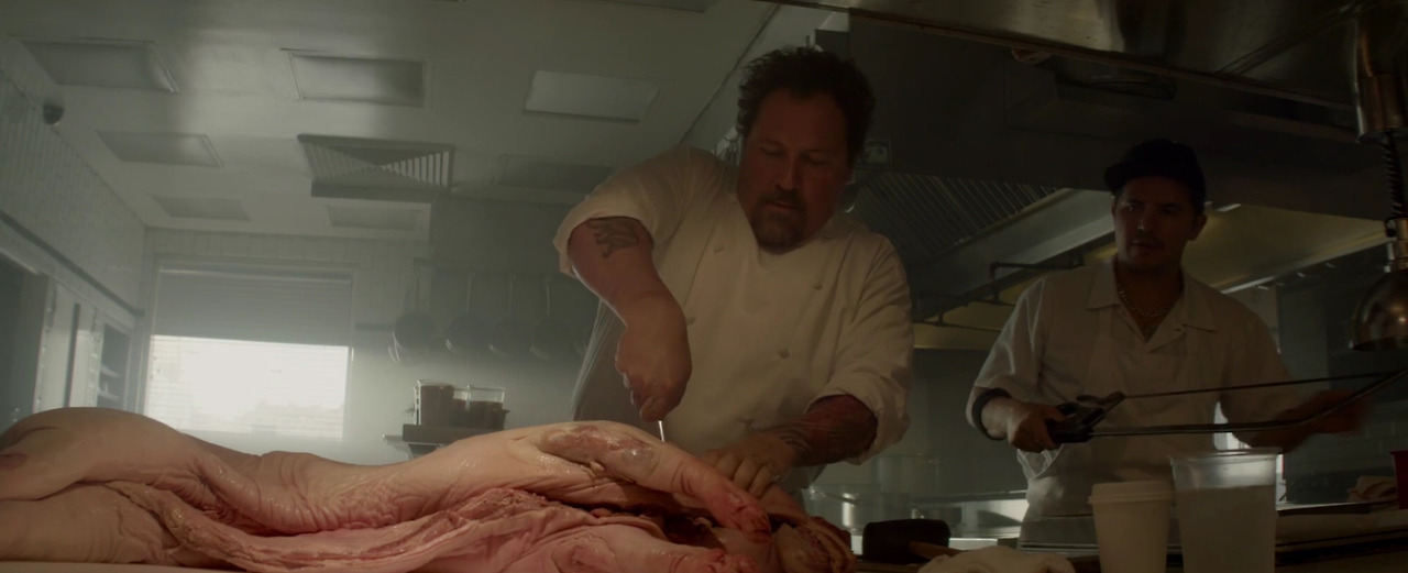 주방에서 바쁘게 움직이는 손이 보이며, 일류 레스토랑의 총괄 셰프인 칼 캐스퍼(존 파브로) 그리고 동료이자 친구 마틴(존 레귀자모)이 요리가 될 재료(돼지고기)를 다듬는다.