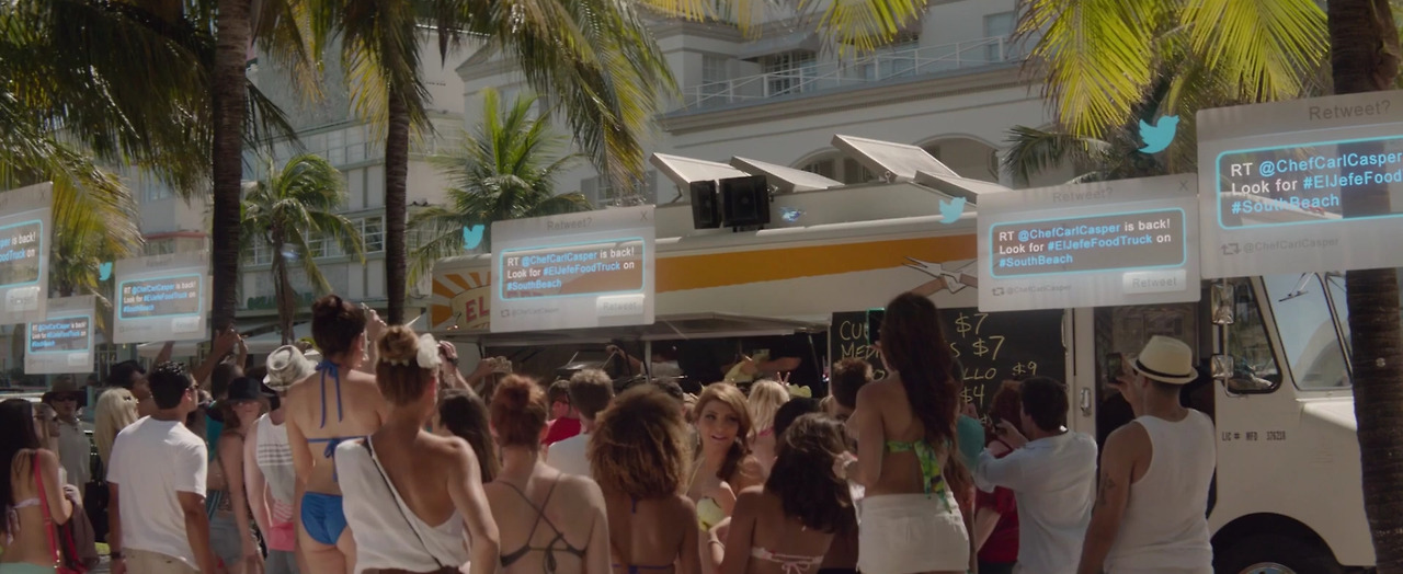 칼과 퍼시 그리고 마틴은 푸드트럭에 혼신의 힘을 다하게 되고 그 결과 기존의 쿠바 샌드위치에 더해서 메뉴를 개발하여 고객들에게 선보이게 된다. 칼의 샌드위치는 사람들의 맛있다는 호평을 받게 되고, 퍼시의 트위터를 통한 홍보효과로 칼의 푸드트럭은 음식을 먹기 위해서 오는 사람들로 문전성시를 이루게 된다.