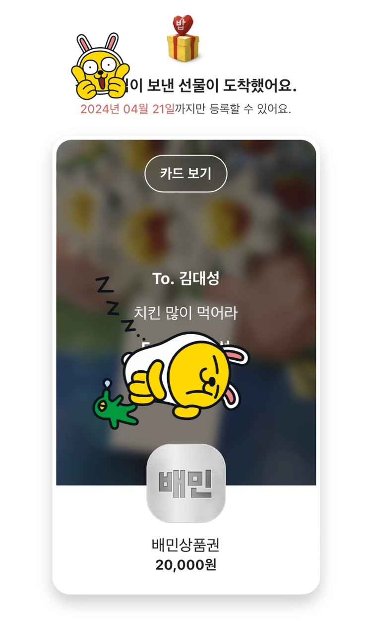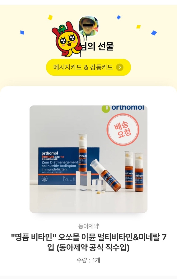 우울한 재택 치료 중에 고맙게도 절친의 비타민 선물과 형의 배민 쿠폰 선물이 왔다. 지금까지 떨어져 있던 체력 좀 올리고 허기진 배를 채워야 할 것 같다.