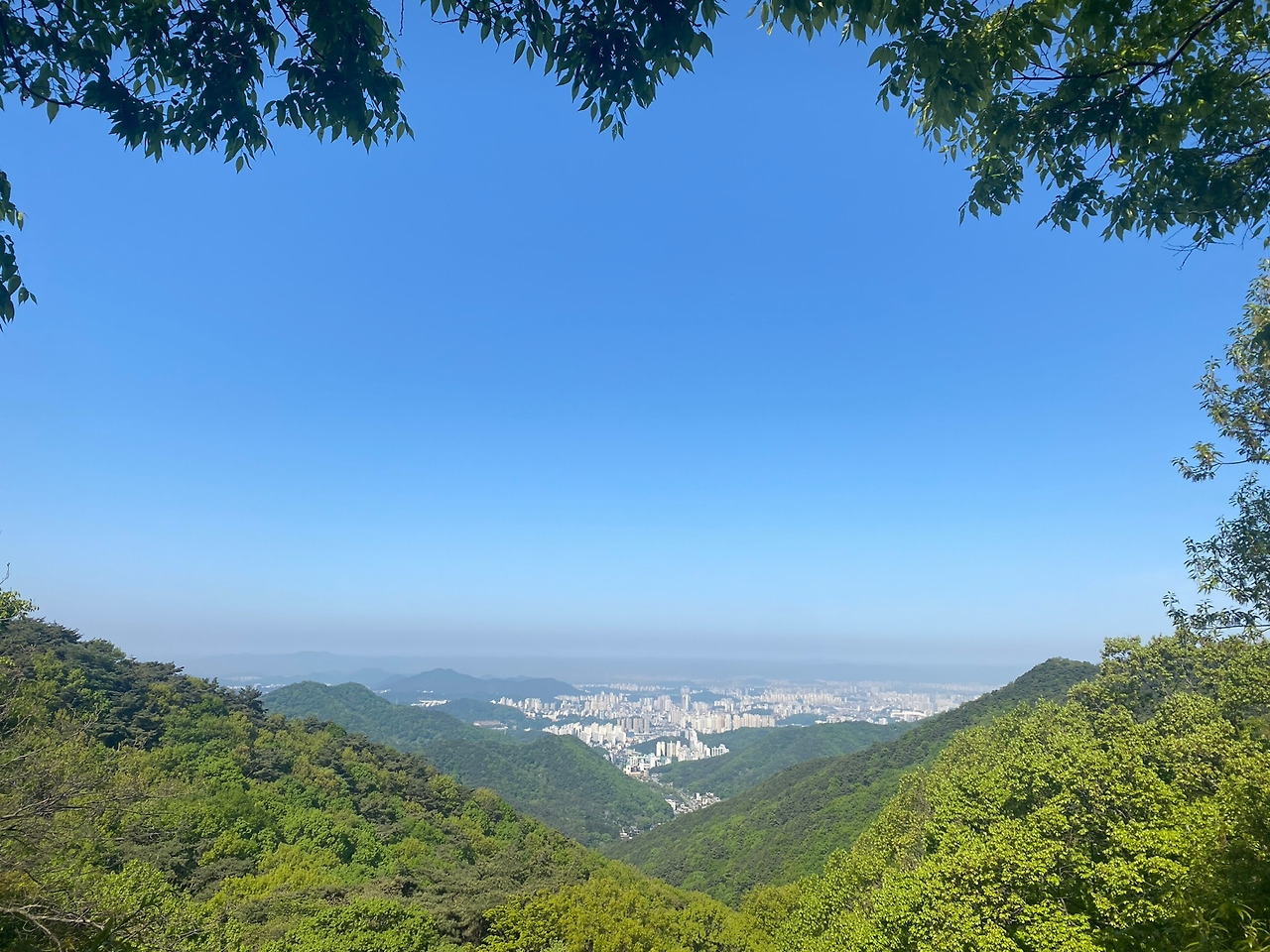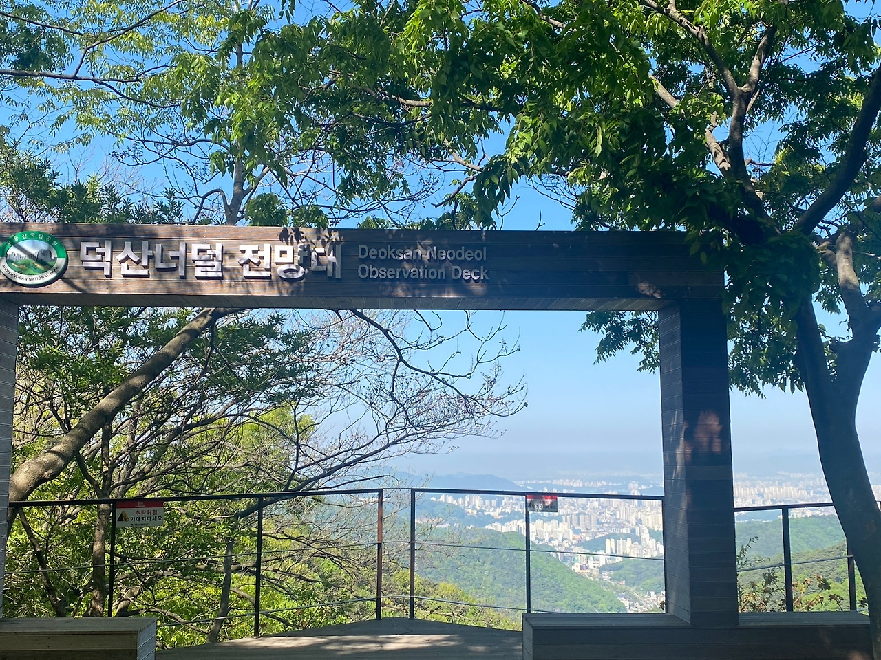 여기서부터 더 올라갈 것인지 아니면 산의 경치를 느끼며 머물다가 내려갈 것인지 고민하게 된다. 그러나 나는 무등산 정상에 오르는 것이 아닌 중턱에서 산의 경치를 구경하며 여유를 만끽하기로 하였다. 걷다 보니 '덕산너덜 전망대'가 있어 사진도 찍어보고 산에서 내려다 보이는 도시의 풍경도 둘러보았다.