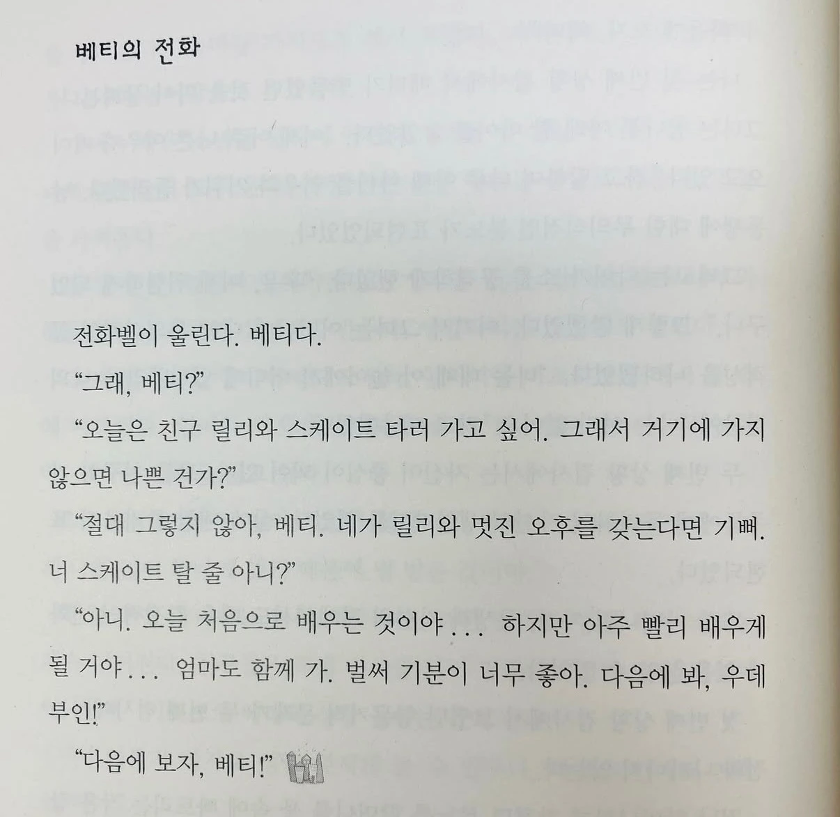 하지만 로봇이 아닌 윤지호로 있는 시간이 길어지고, 친구 이야기나 가족 이야기를 신나게 하고, STOP이 조금씩 가능해졌어도, 그래도 지호와 지호네 가족은 아직도 길고 좁은 산마루 앞에 서 있다고 생각도 들었지. 어머님의 휴직은 영원하지 않을 거고, 부부관계가 완전히 회복된 것도 아니고, 지호의 상처나 문제행동이 말끔히 다 없어진 것도 아니니까.