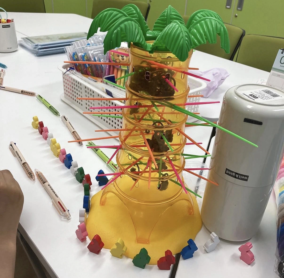 그날 우리는 텀블링 몽키를 했어. 야자수 모양의 플라스틱 기둥에 원숭이들을 매달아 놓고, 색색깔의 막대를 하나씩 빼면서도 원숭이가 떨어지지 않게 하는 그 게임. 지호는 이 게임을 좋아했어. 원래는 막대를 얼기설기 다 꽂아놓고 원숭이를 야자수에 부어 게임을 시작해야 하는데, 그날은 지호가 본인이 만든 작품이 마음에 들었는지 갑자기 다른 말을 했어.