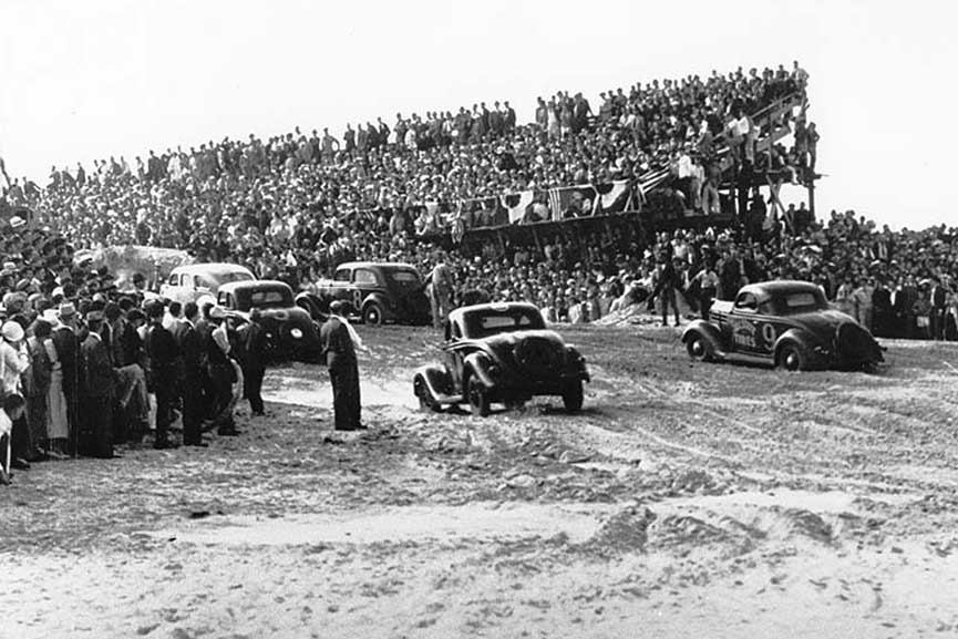 그런데 1933년 금주법이 해제됩니다. 산속이나 동굴에 숨었던 양조업자들은 증류기를 들고 도시로 달려왔고 도시 곳곳에 술집이 생기기 시작했습니다. 그러자 수년간 목숨을 담보로 속도와 치열하게 경쟁했던 문샤인 드라이버들도 더 이상 달릴 이유가 없게 됩니다. 하지만 문샤인 드라이버들은 멈추지 않았어요. 생사를 넘나드는 속도 위에 있던 그들은 스피드가 주는 짜릿함을 잇지 못했고, 매주 토요일과 일요일 밤에 플로리다에 모여 경주를 계속했습니다.