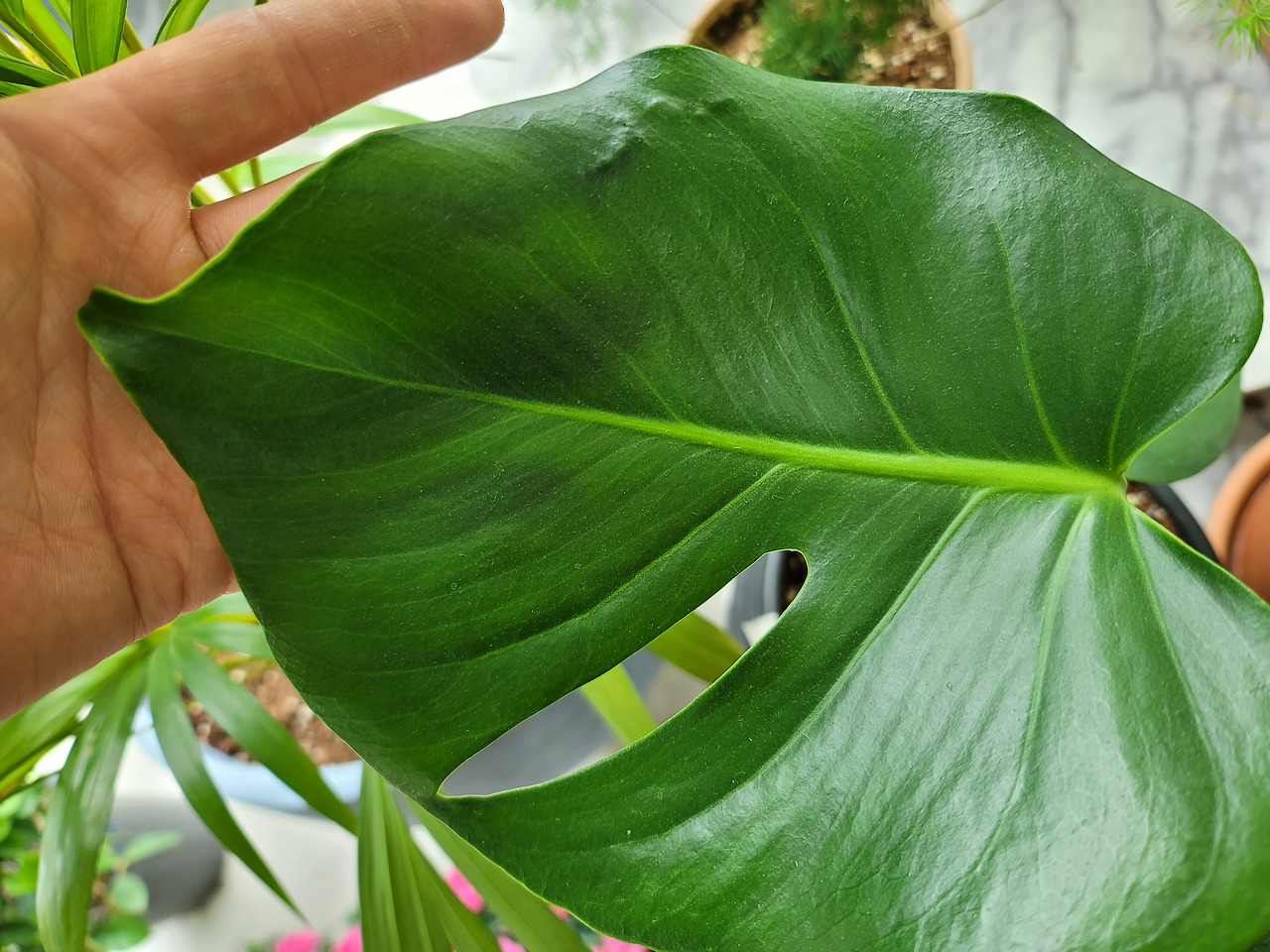 2주 후 몬스테라 교과서에 실릴법한 자태와 색감으로 순둥순둥 착한 몬스테라는 내 사과에 응답했다.
