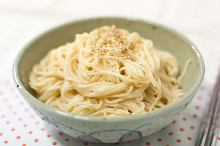 간장비빔국수에는 오이를 올려 먹기도 하고, 반숙 계란이 올라가기도 하고, 계란 지단을 구워 함께 먹기도 한다. 하지만 우리 집 간장 국수는 간장과 참기름을 쪼르륵 따라 손으로 휘적휘적 비비고 깨소금만 솔솔 뿌린, 그야말로 심심함의 극치였다.